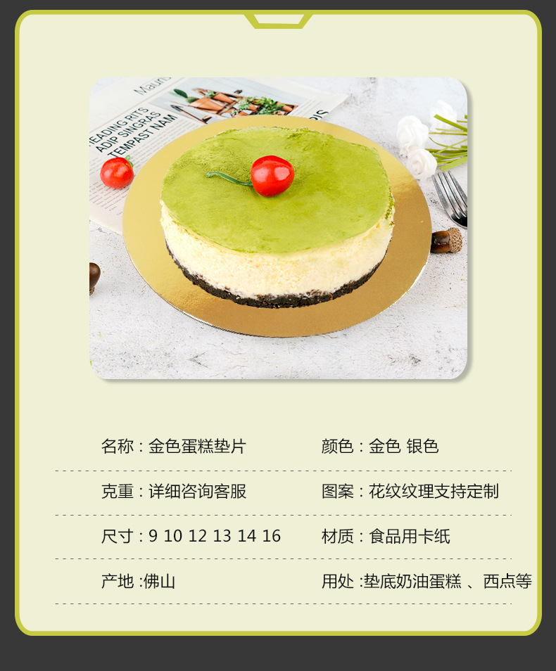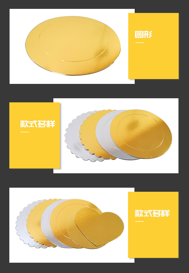 Venta al por mayor ronda de oro de plata pastel de papel almohadilla de doble cara pastel de apilamiento de soporte inferior embalaje para hornear 15cm Pastel redondo