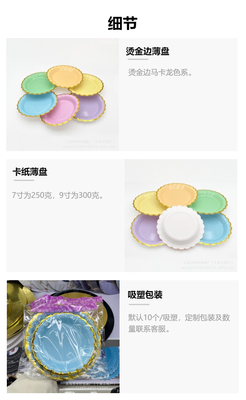 Plato desechable de 7 pulgadas 9 pulgadas Plato de picnic Plato de pastel Plato de fiesta de cumpleaños Plato de papel Plato de postre Plato de bocadillos