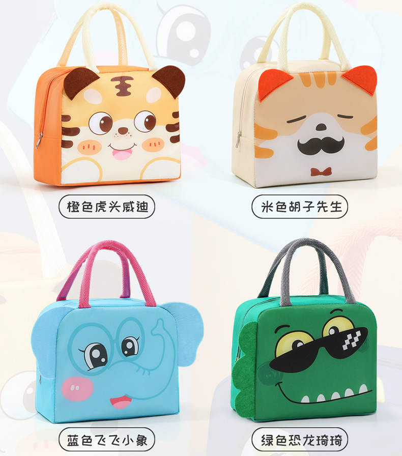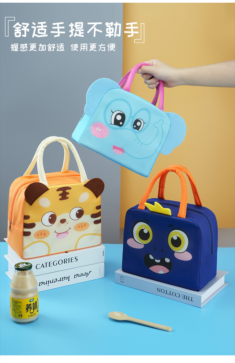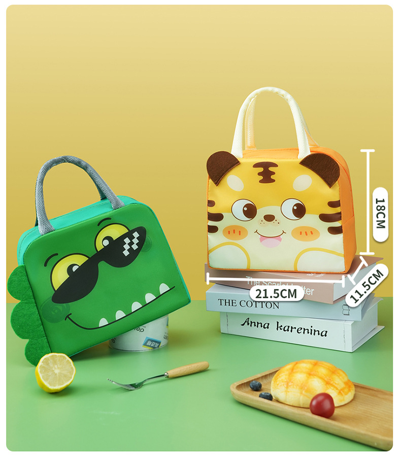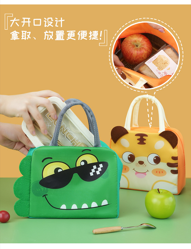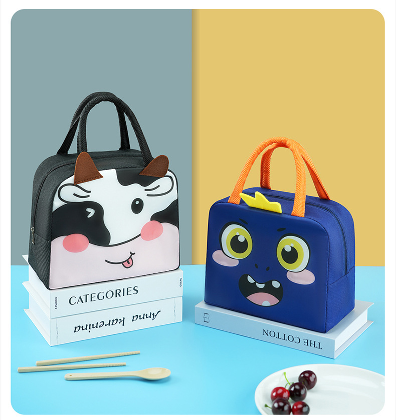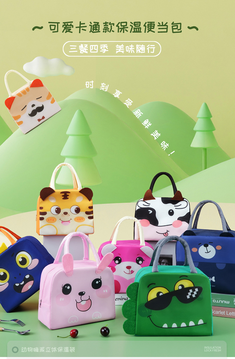 Bolsa de almuerzo de animales tridimensionales portátil con bolsas de aislamiento térmico de arroz. Estudiantes de dibujos animados que van al trabajo y van a la escuela con bolsas de arroz.