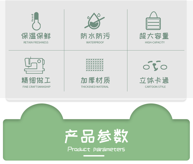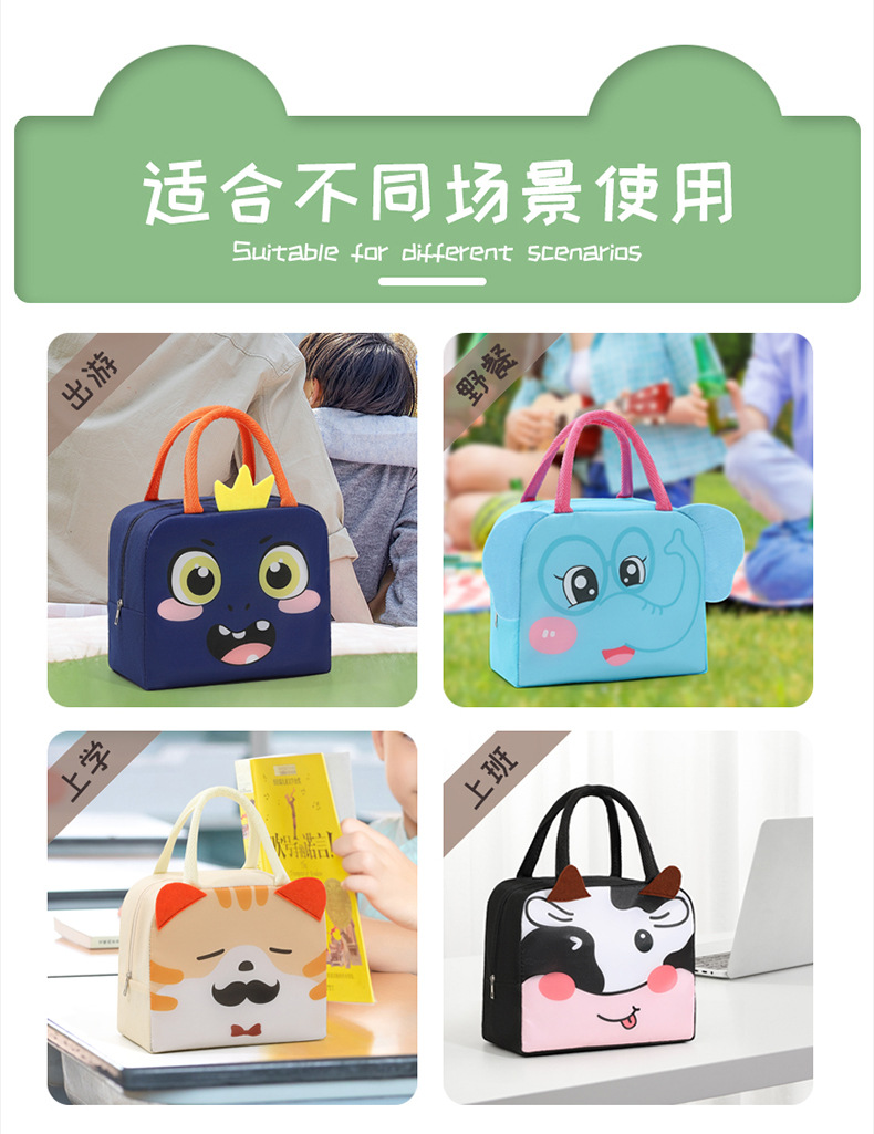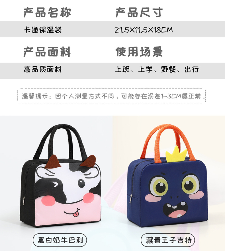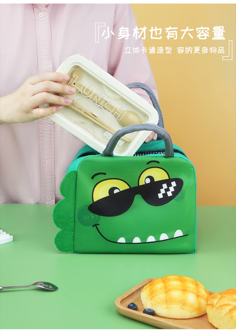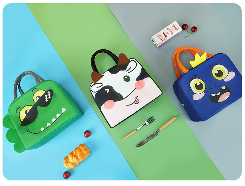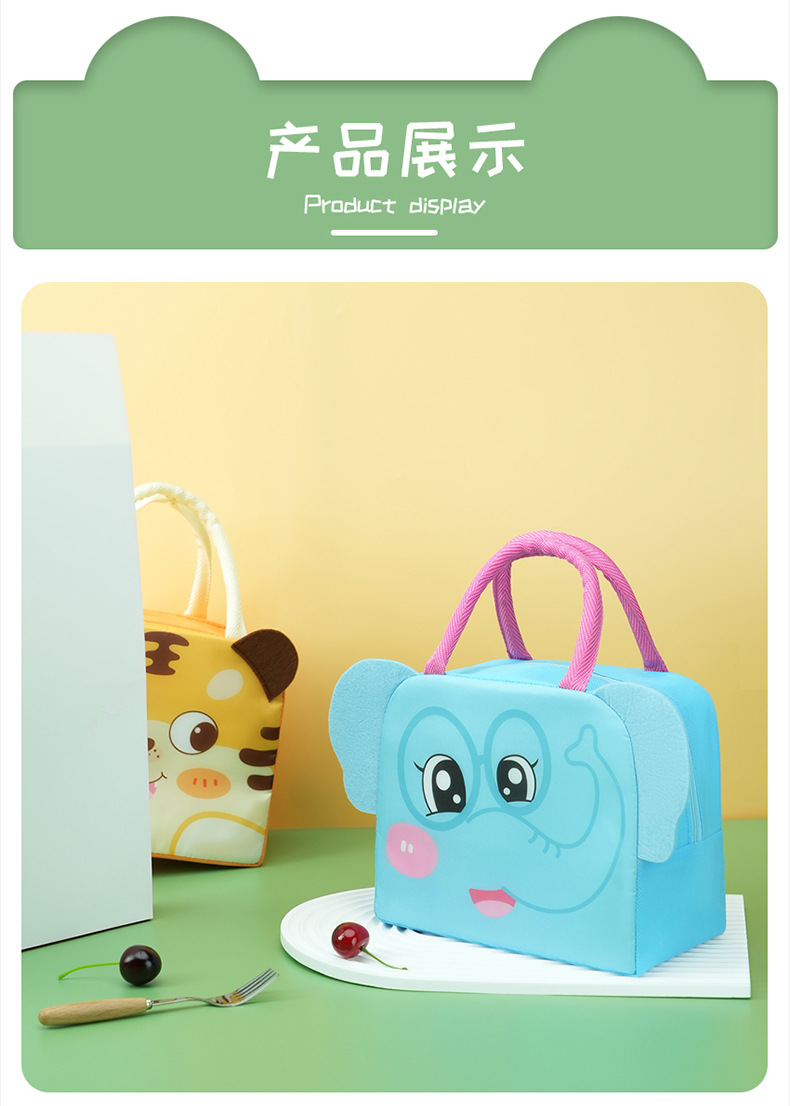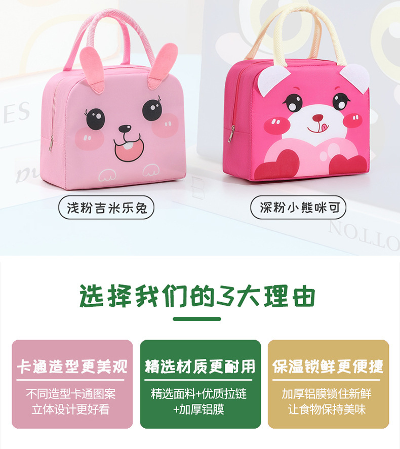Bolsa de almuerzo de animales tridimensionales portátil con bolsas de aislamiento térmico de arroz. Estudiantes de dibujos animados que van al trabajo y van a la escuela con bolsas de arroz.