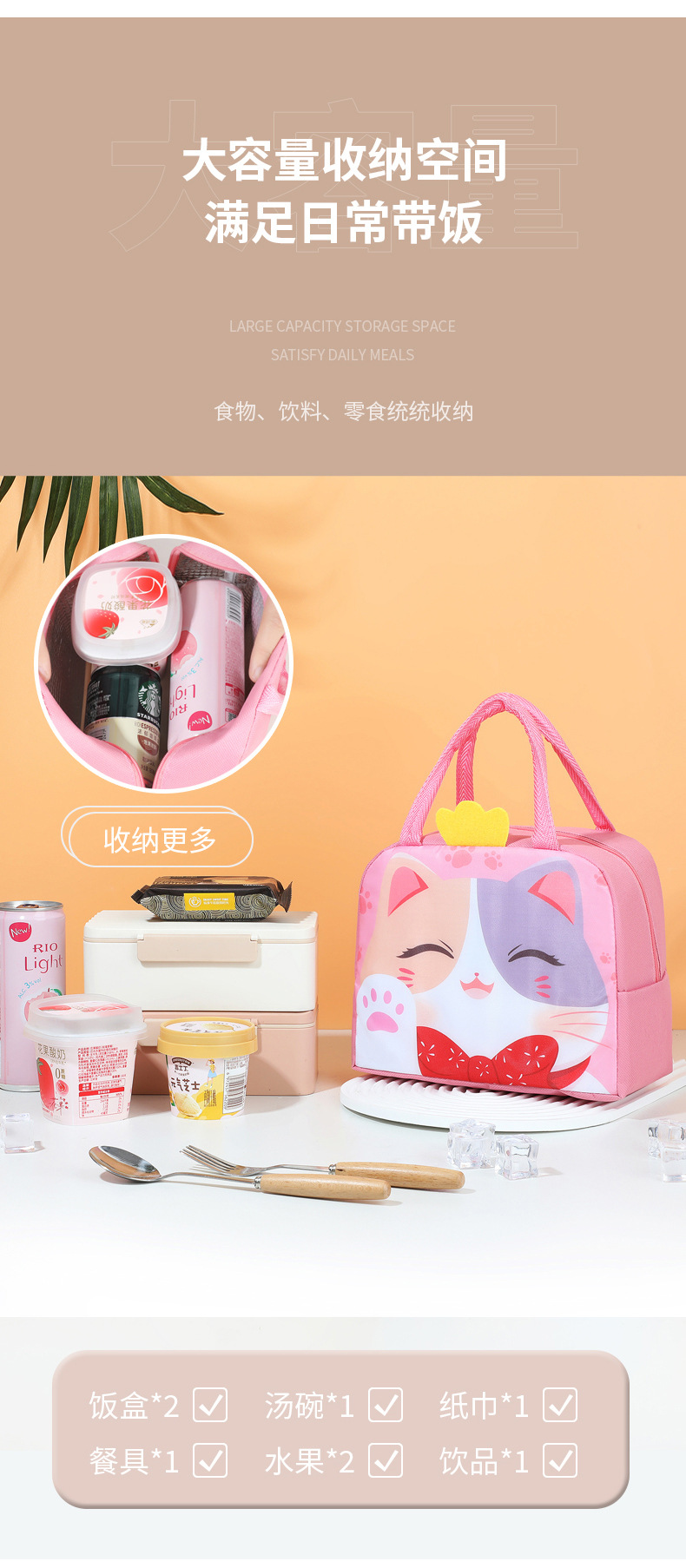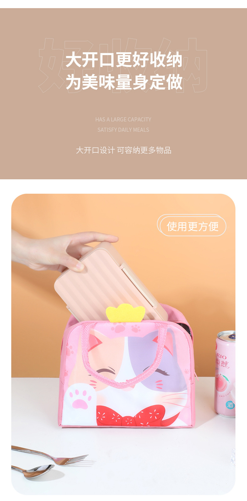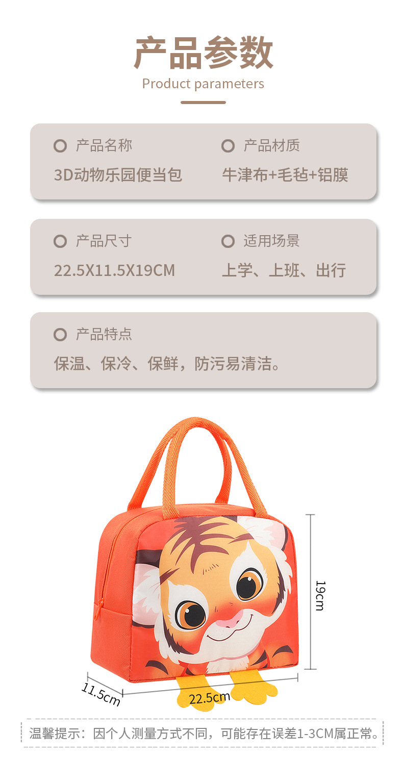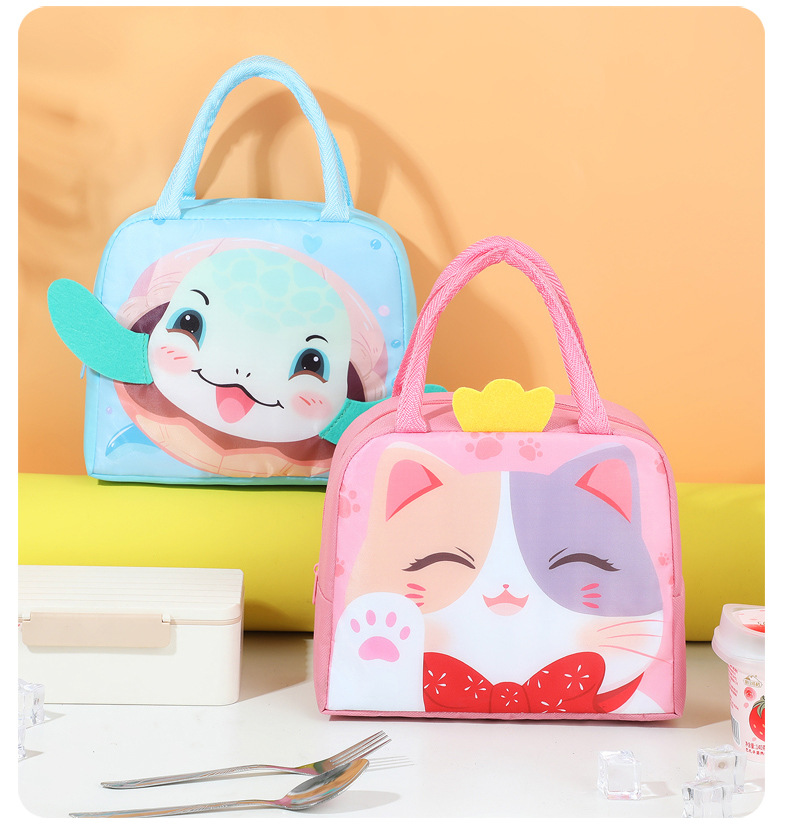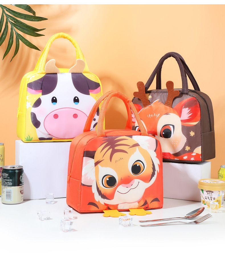 Nuevo cartón de dibujos animados bolsas de almuerzo estereoscópicas estudiantes niños bolsas de almuerzo de mano bolsa de aluminio aislante de calor bolsa de picnic con bolsa de comida