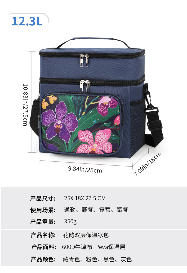 Nuevo paquete de aislamiento de flores al aire libre para picnic bolsas de alimentos frescos bolsas de almuerzo transfronterizas bolsas de almuerzo bolsas de almuerzo portátiles con arroz