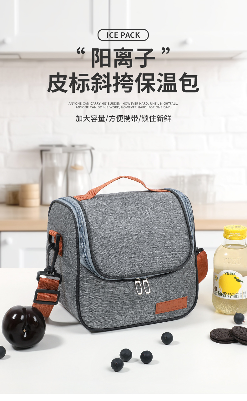 Bolso aislante portátil catiónico, bolso de lonchera de mensajero, bolso de almuerzo con cinturón, bolso de hielo de papel de aluminio, bolso de trabajo de viaje de moda