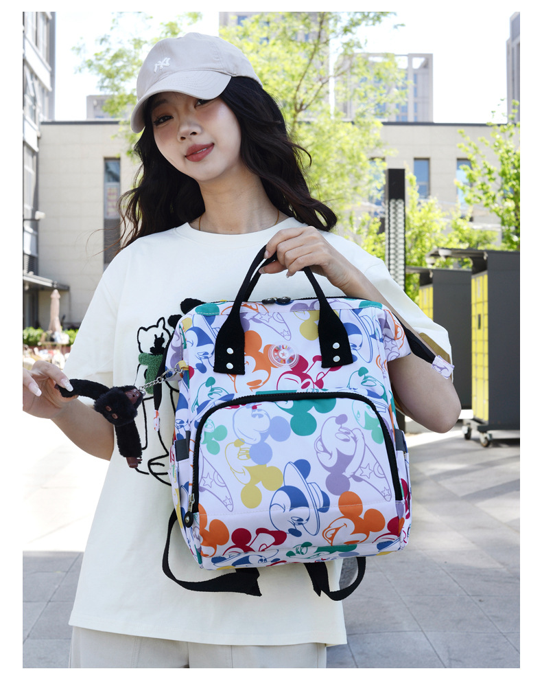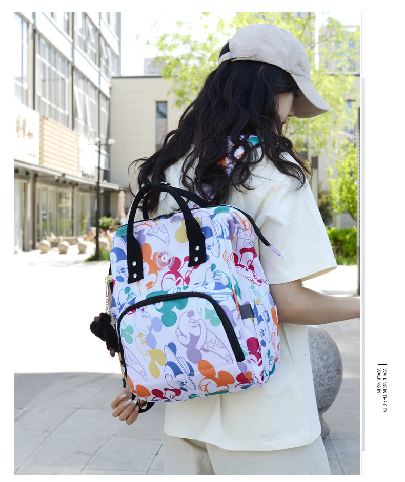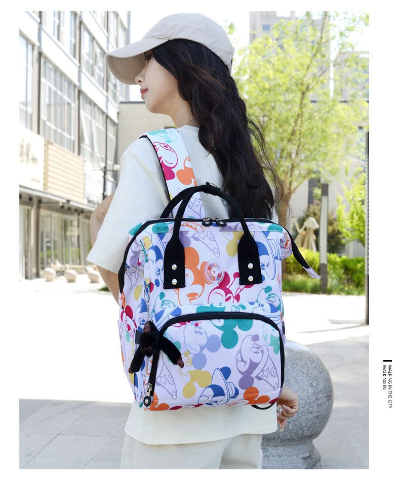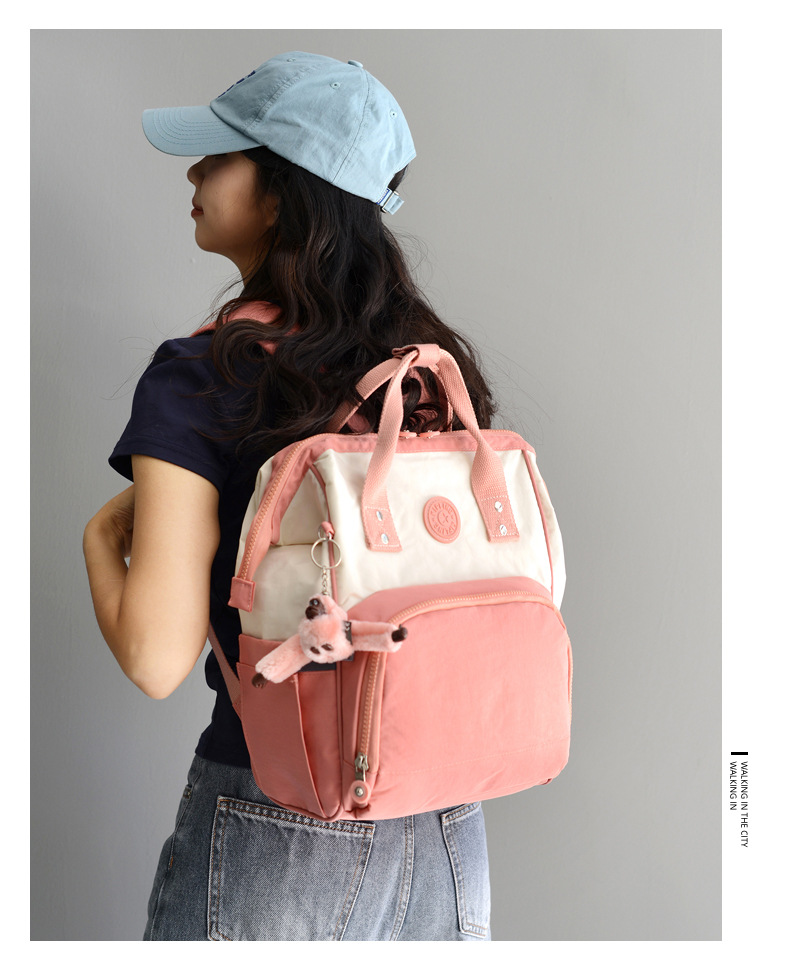 2025 nueva mochila para mujer casual kp momia bolso tela de nailon moda compras mochila con colgante de mono