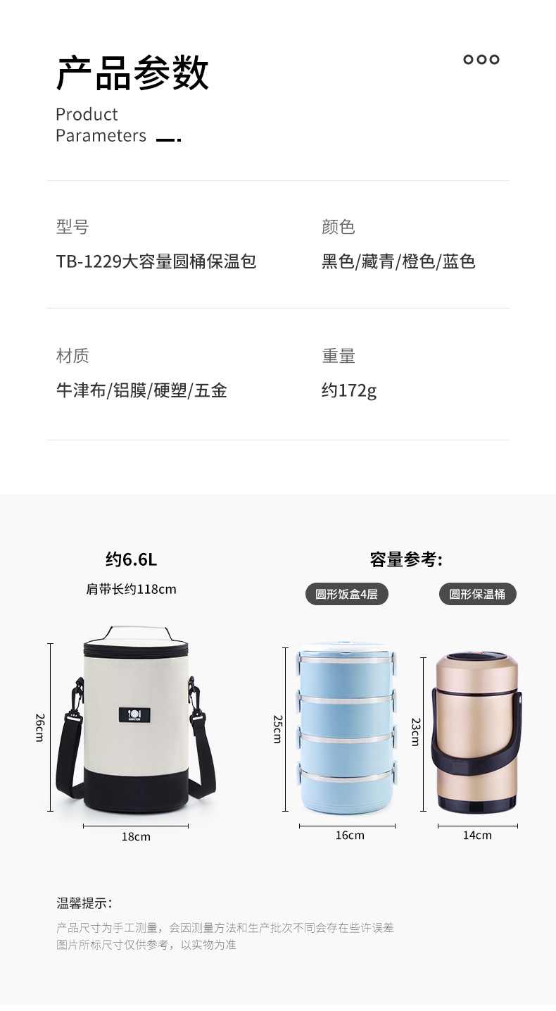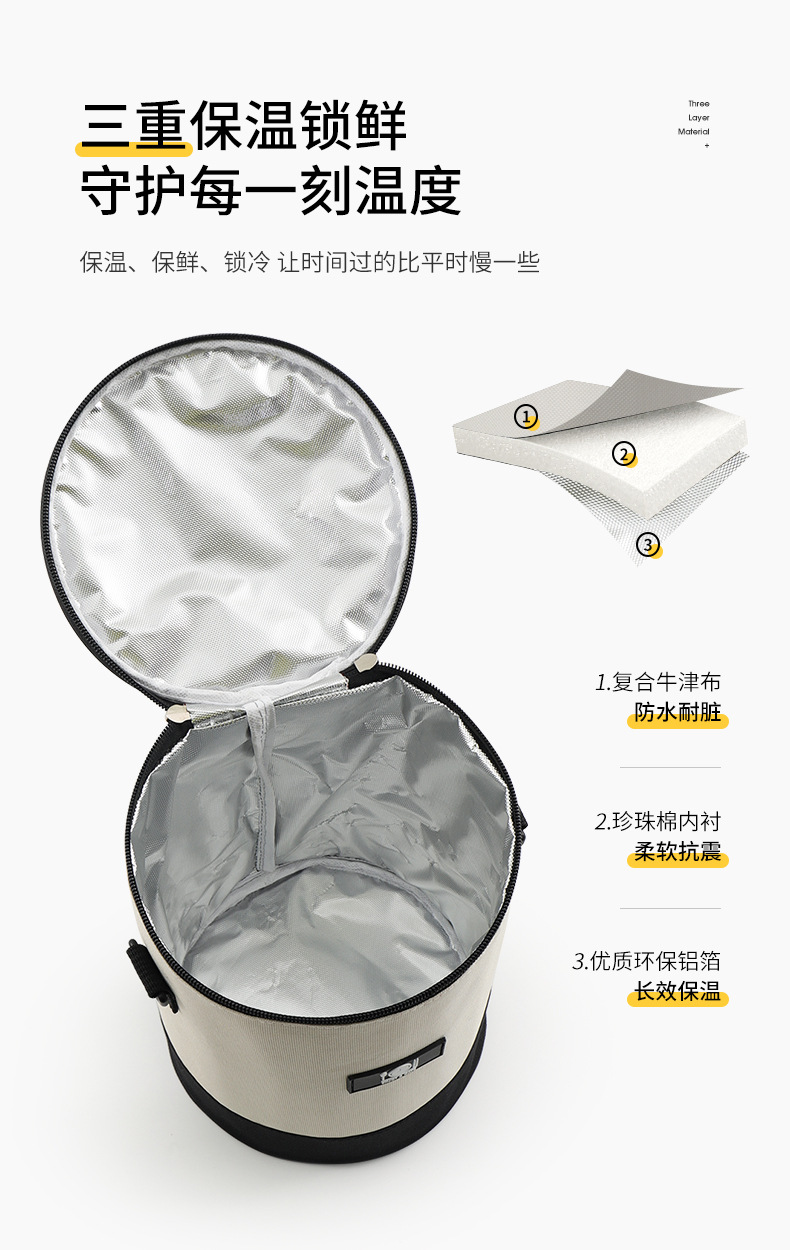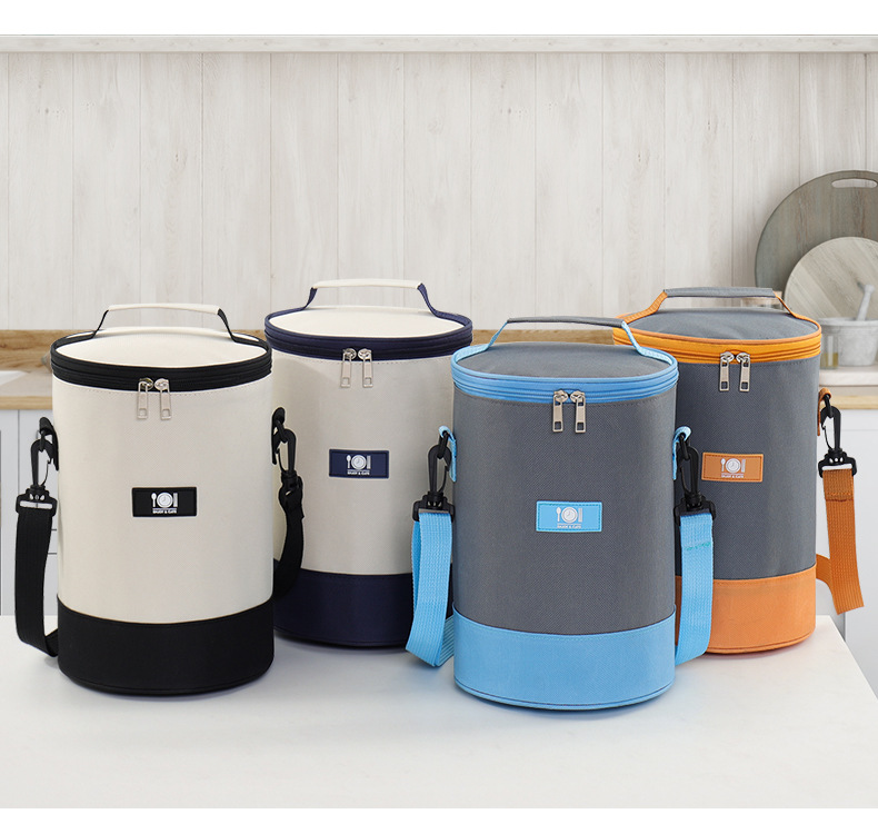 Nueva bolsa de almuerzo de aluminio de gran capacidad bolsa de almuerzo de aislamiento térmico bolsas de barril redondas con cinturón con bolsas de almuerzo explosión de comercio exterior
