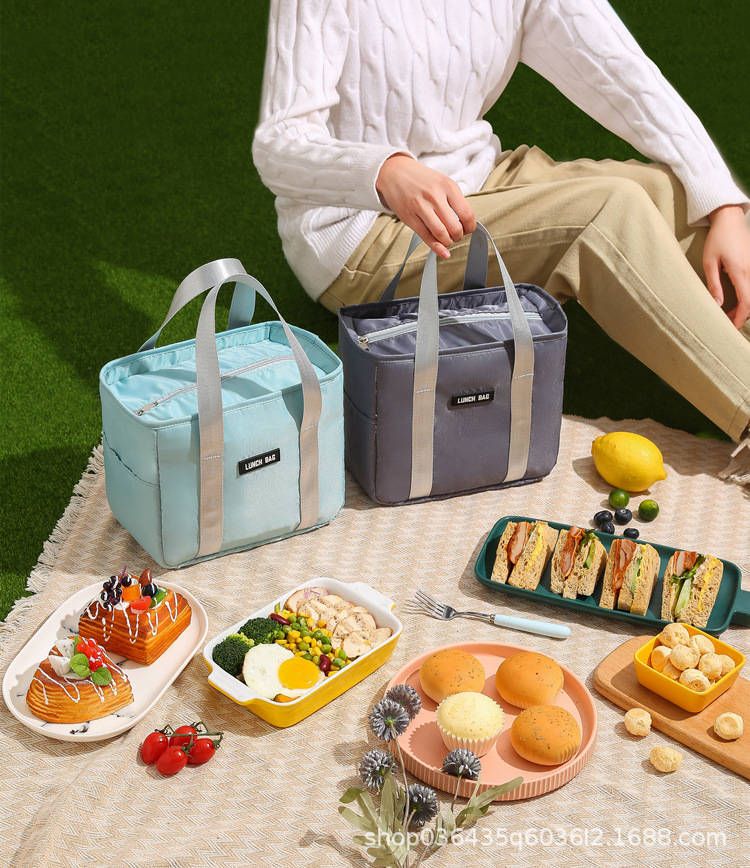 Estudiante de oficinista impermeable pequeña bolsa de comida de papel de aluminio caja de almuerzo engrosada bolsa de aislamiento Portátil Bolsa De Bento con bolsa de arroz