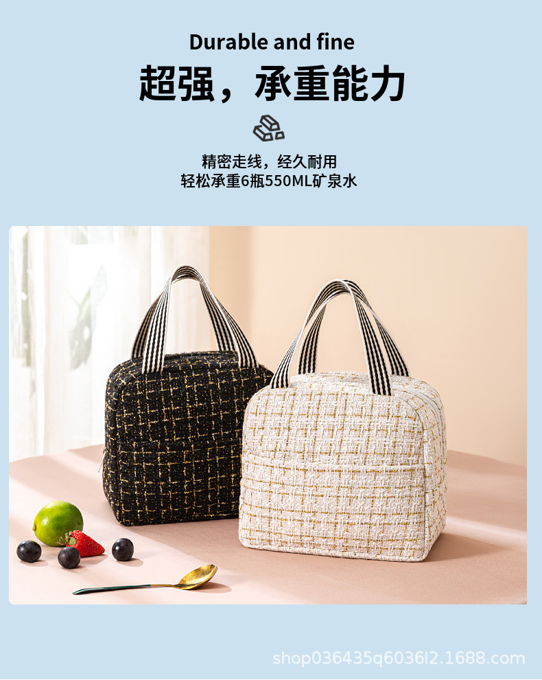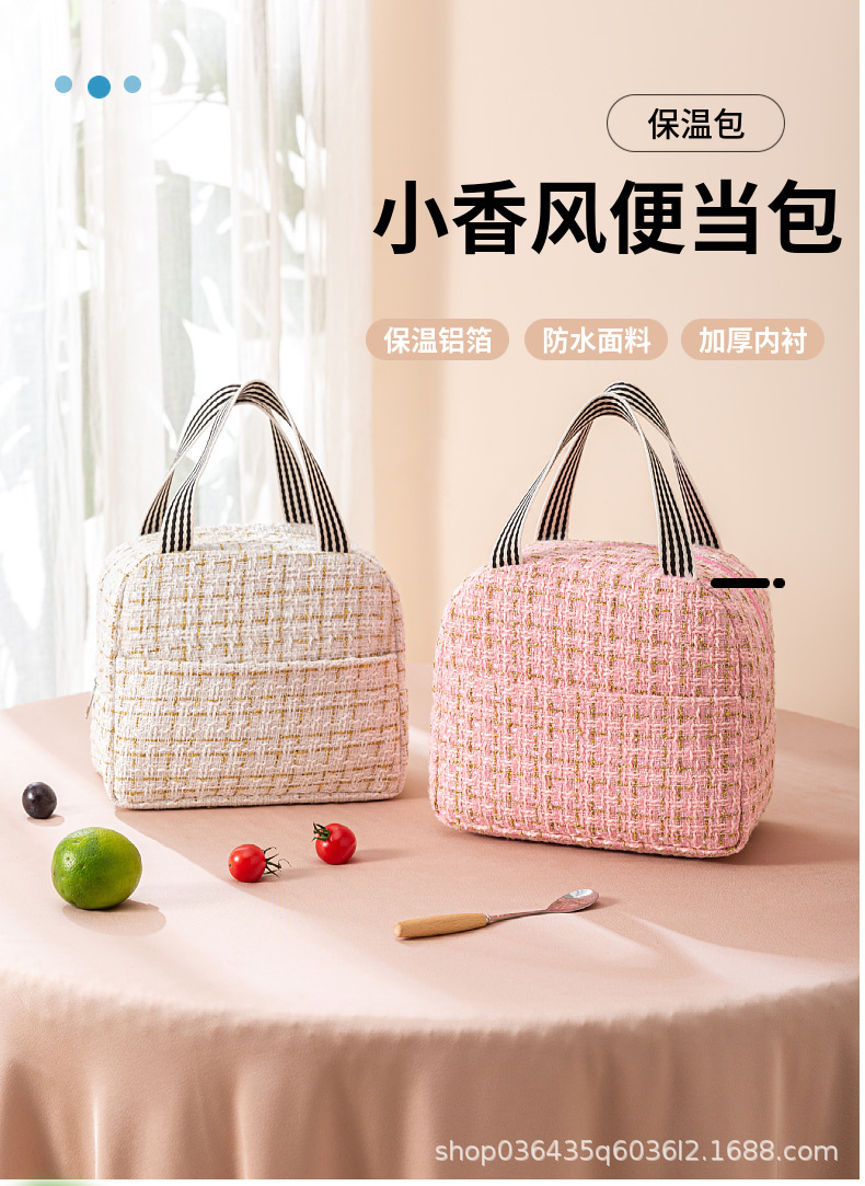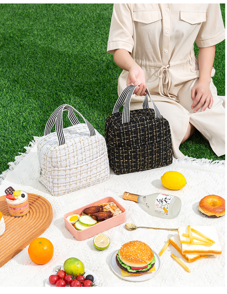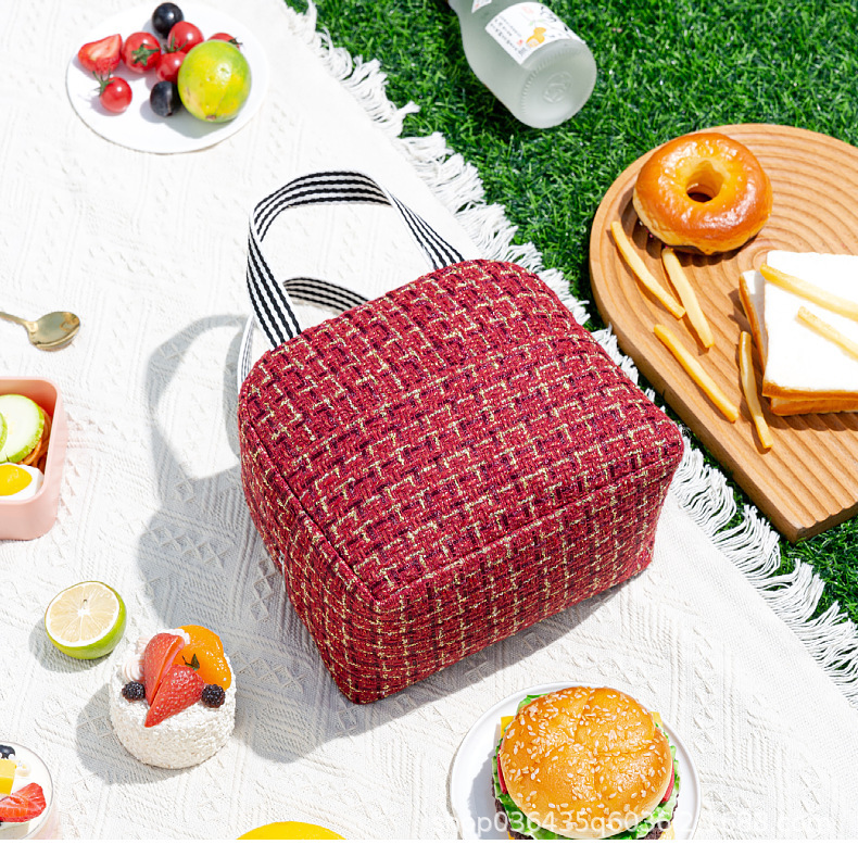 Moda estilo Chanel bolsa de almuerzo bolsa de aislamiento térmico bolsa de almuerzo Portátil Bolsa de aislamiento térmico estudiante bolsa de almuerzo portátil