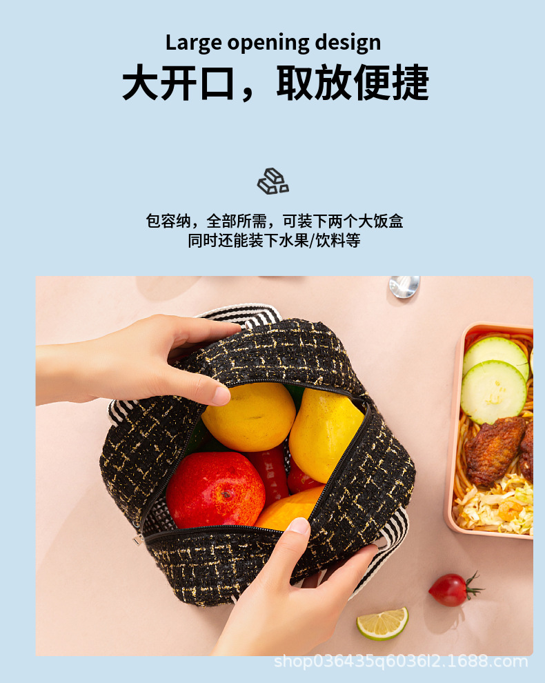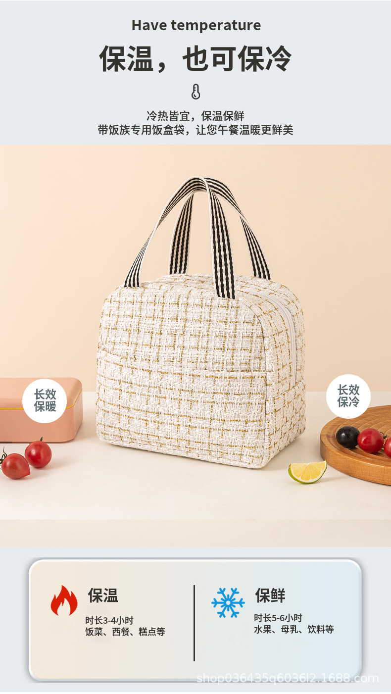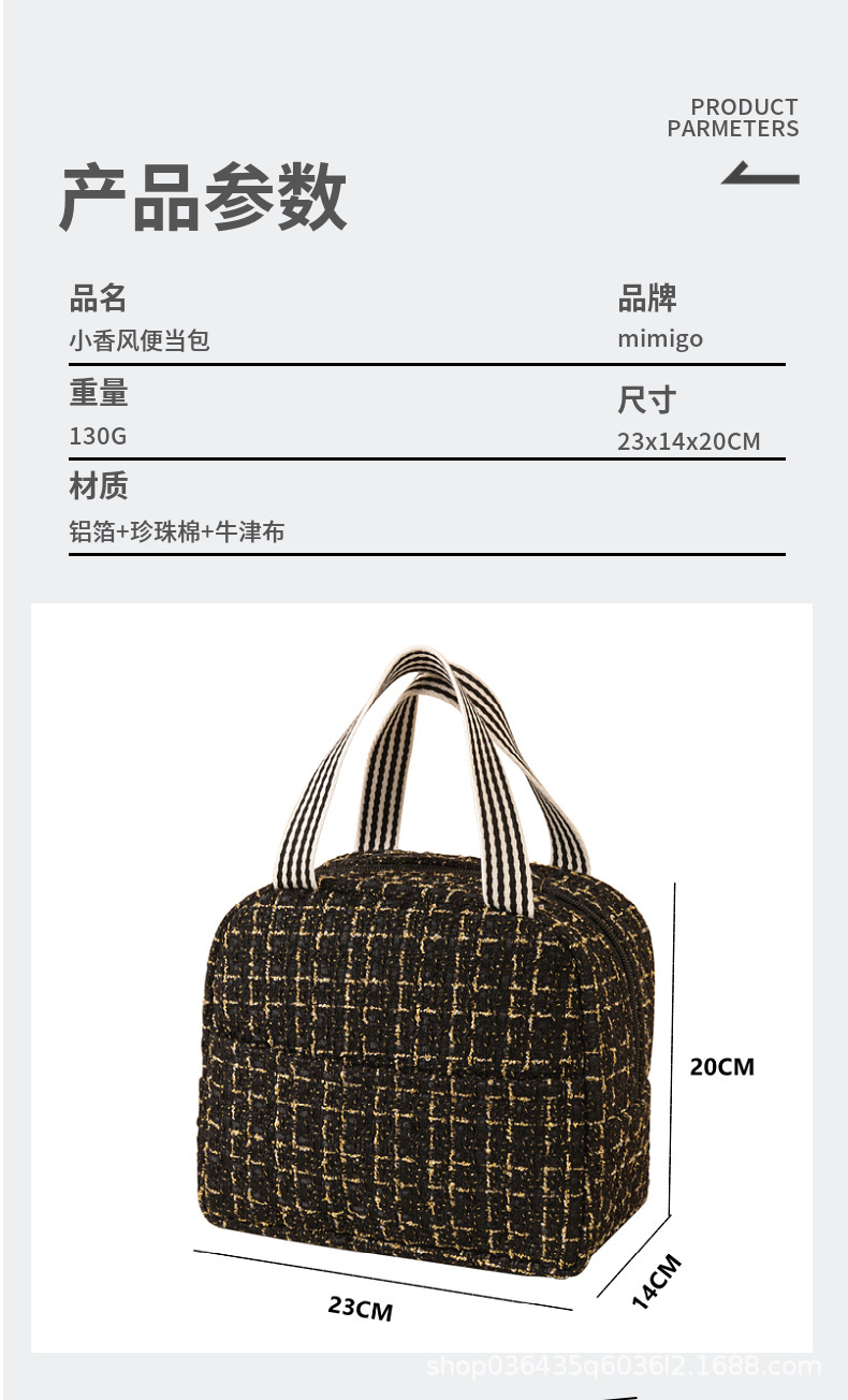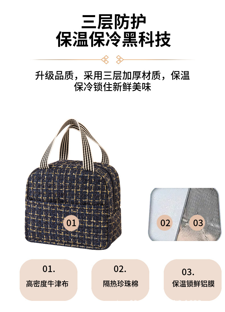 Moda estilo Chanel bolsa de almuerzo bolsa de aislamiento térmico bolsa de almuerzo Portátil Bolsa de aislamiento térmico estudiante bolsa de almuerzo portátil