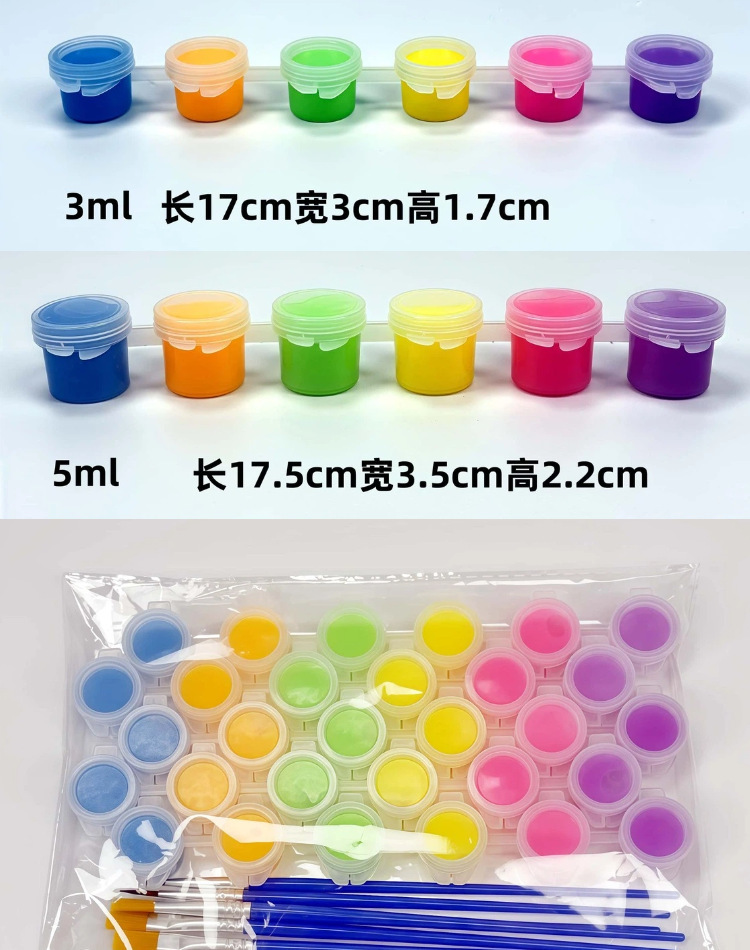 | Color | 3ml 6 color de tira de pigmento luminoso, 5ml 6 color de tira de pigmento luminoso, bolígrafo de cabeza plana 16,5cm, bolígrafo de punta 16,5cm, paleta de 11cm |