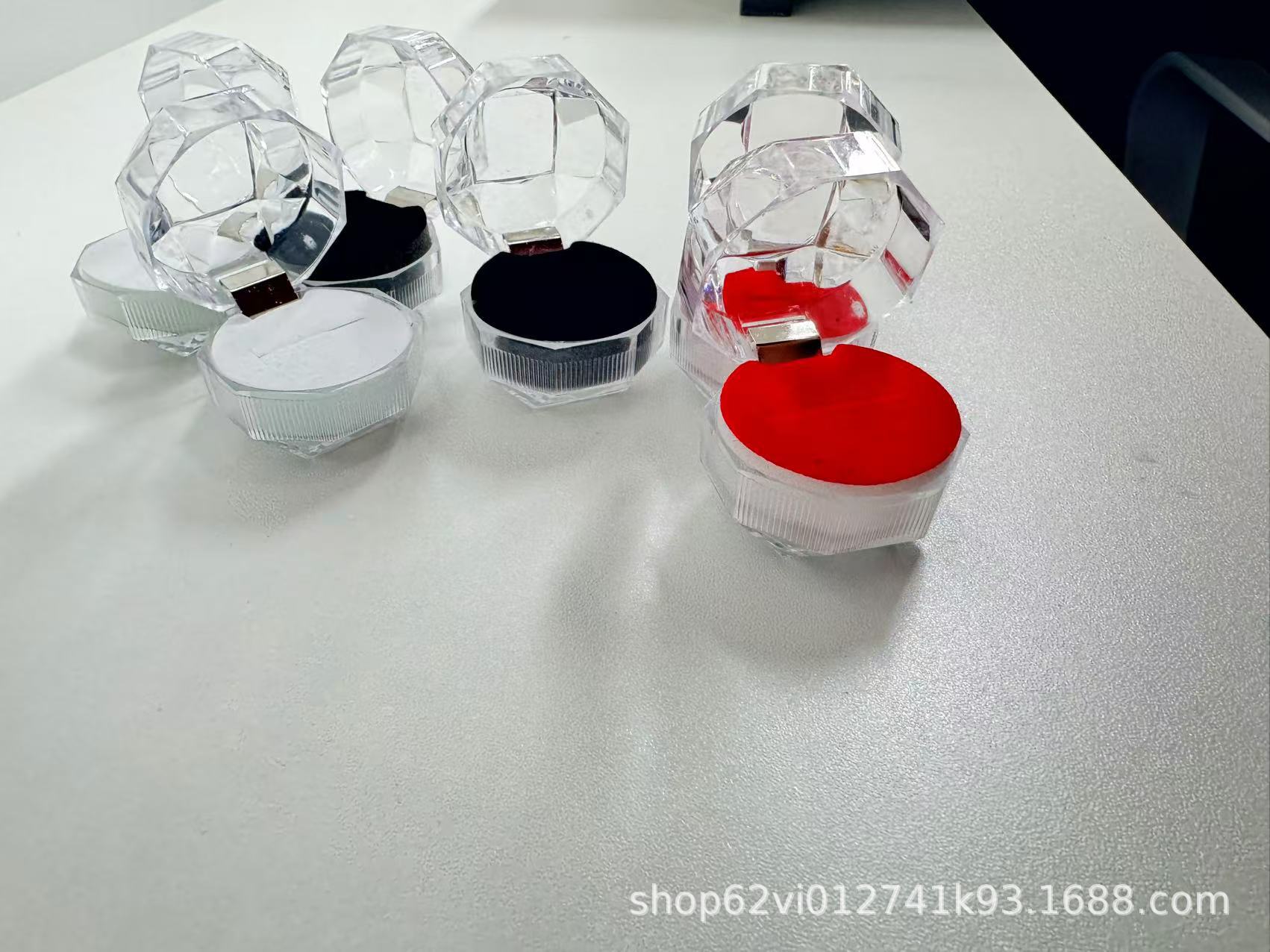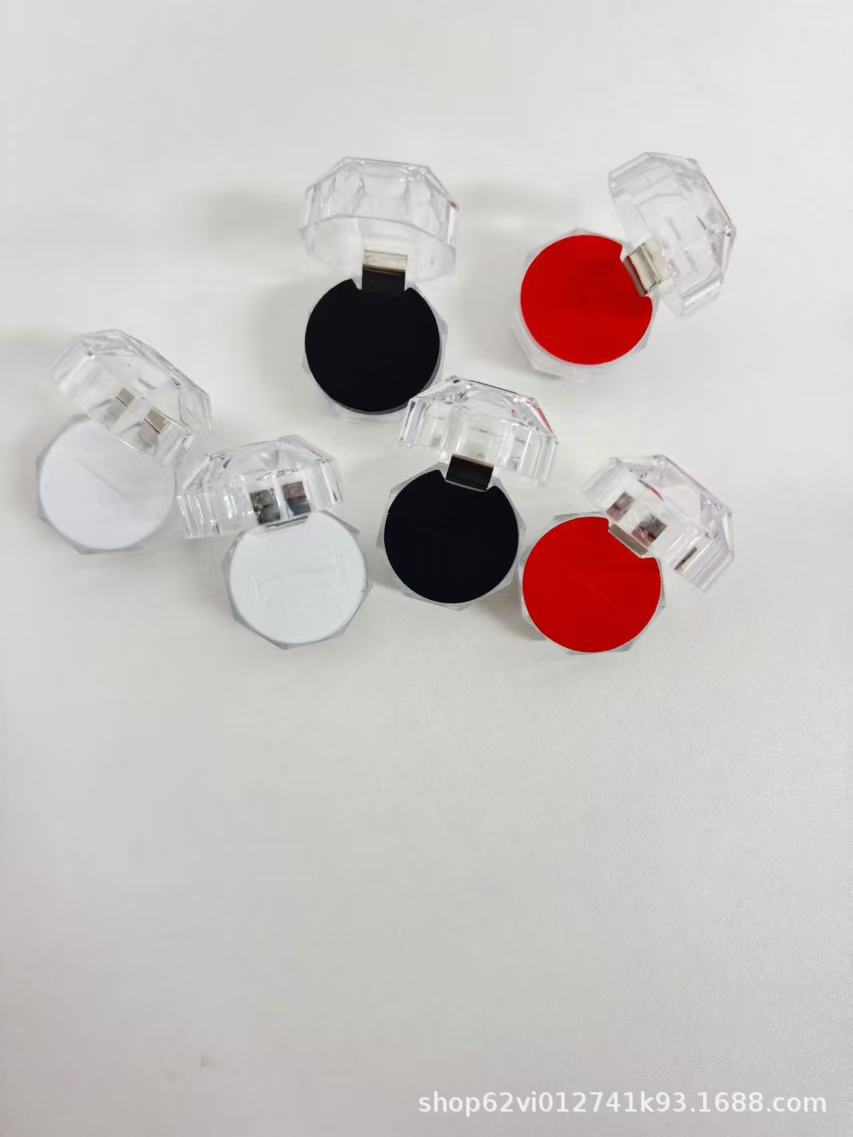 Caja de cristal transparente con tapa plegable pequeña caja de embalaje de pernos de anillo octogonal caja de joyería acrílica joyería caja de almacenamiento