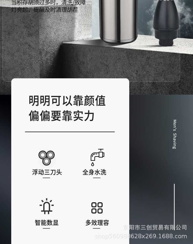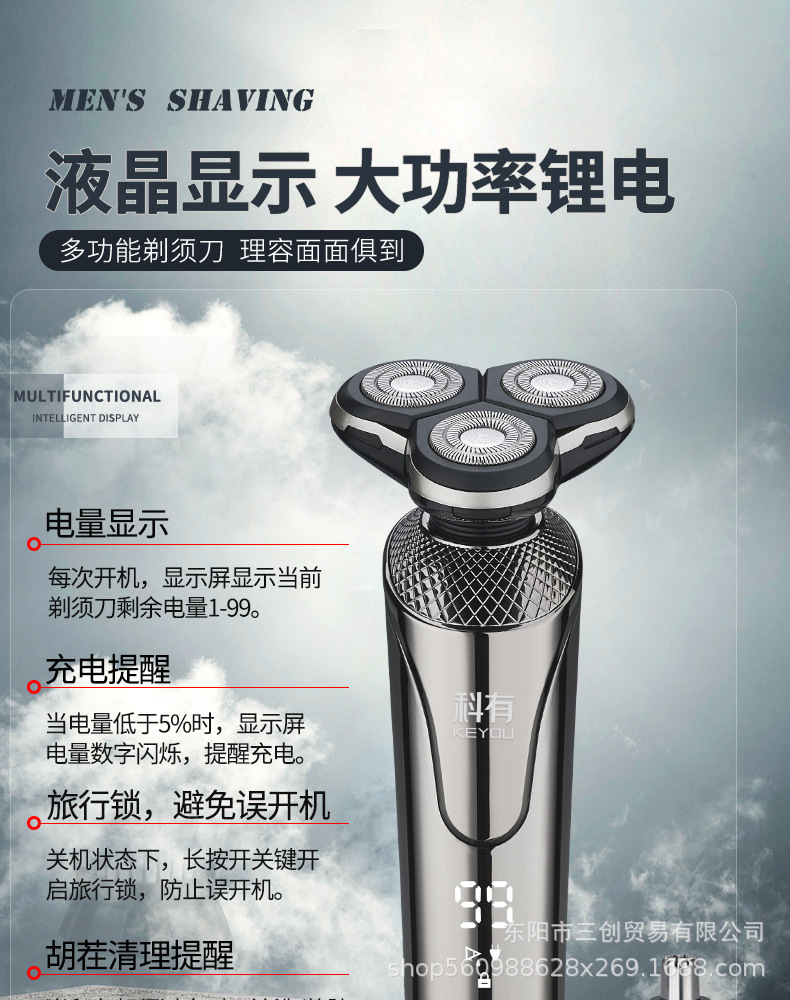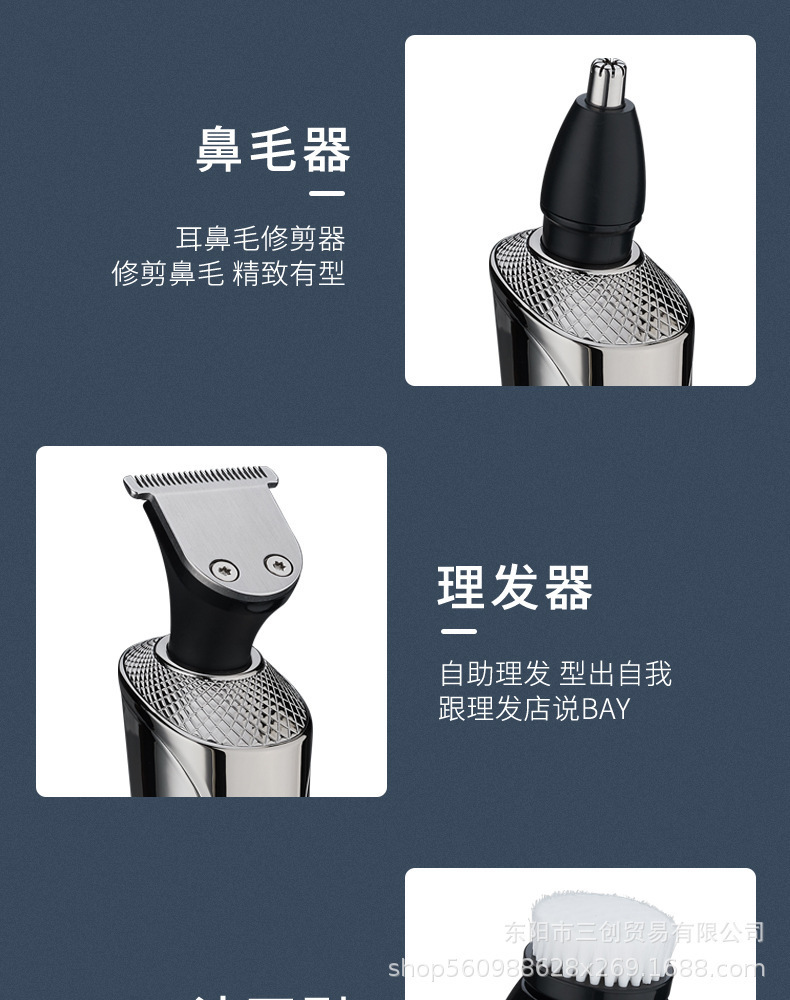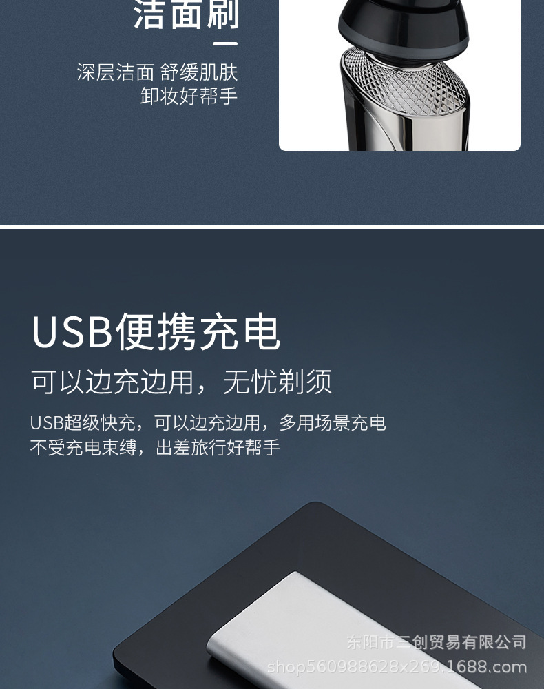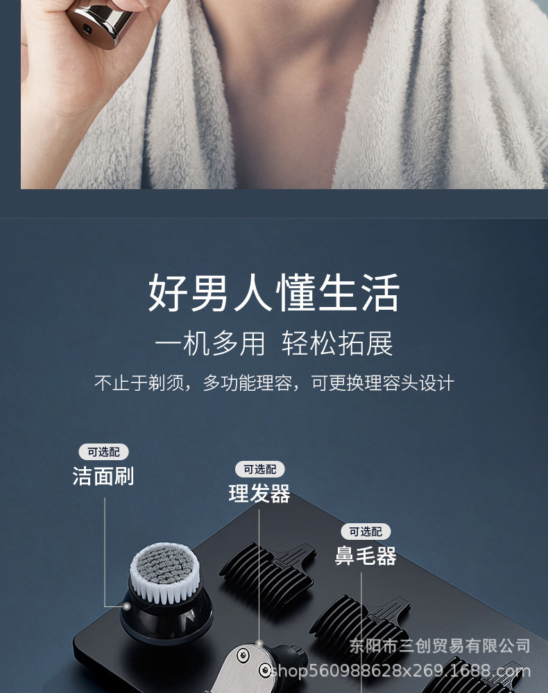 Cuchillo de afeitar eléctrico multifuncional de alta potencia recargable, raspador de barba de hombre lavado con agua.