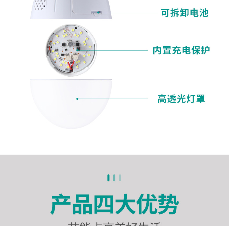 Bombilla LED de emergencia con batería dual extraíble 3920, bombilla de emergencia E27 con carga.