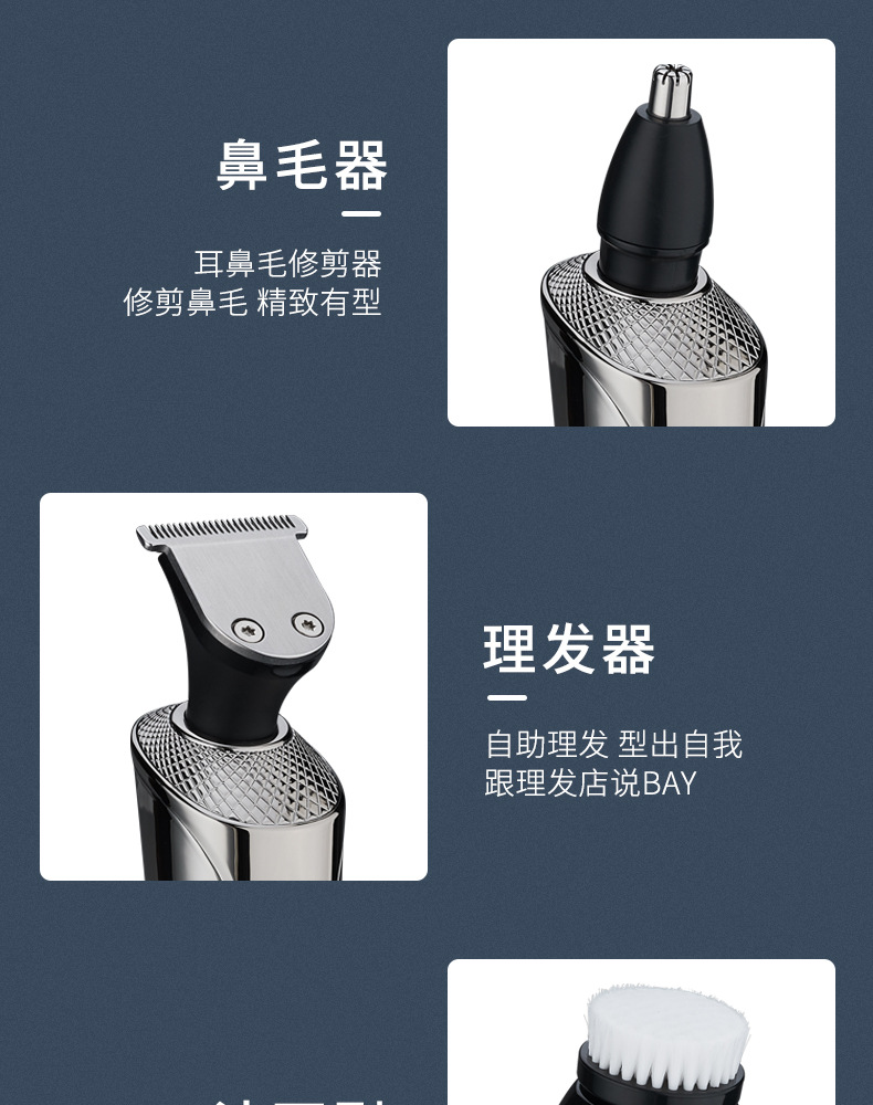 Configuración estándar + pellizco nasal + cortador de antejas + cortador de pelo + cepillo facial