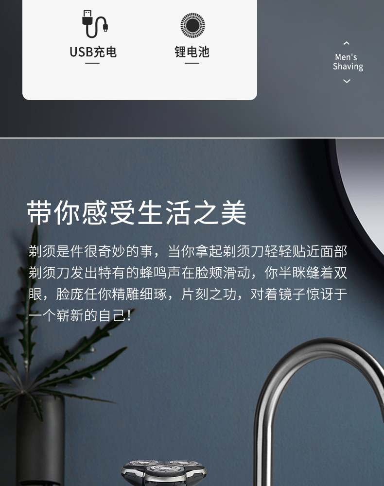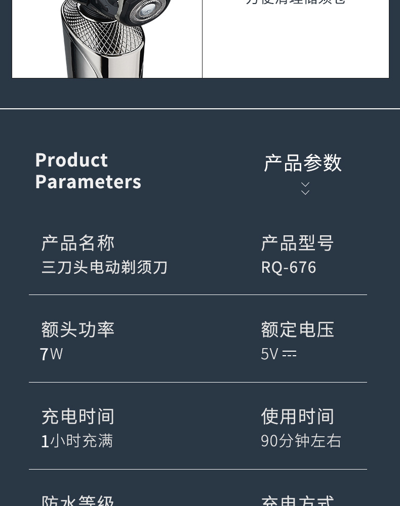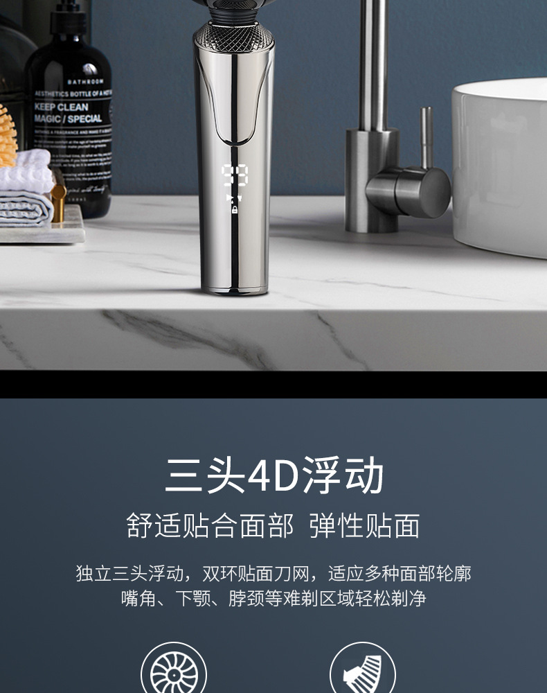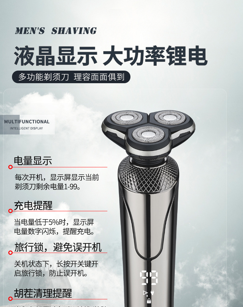 afeitador eléctrico de alta potencia recargable afeitador hombre afeitador líquido RQ676 cabeza de tres cuchillos