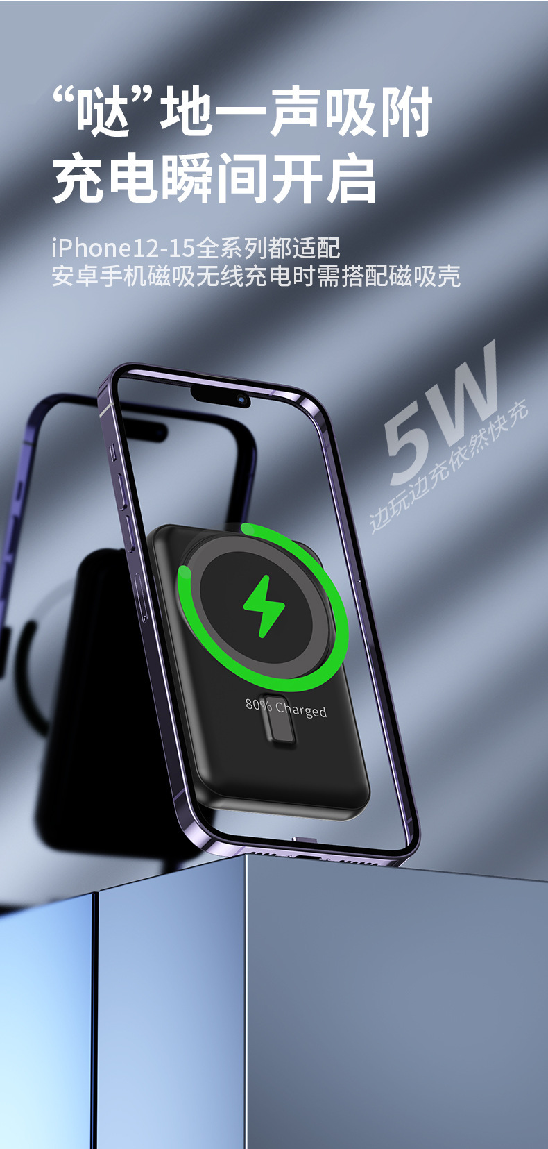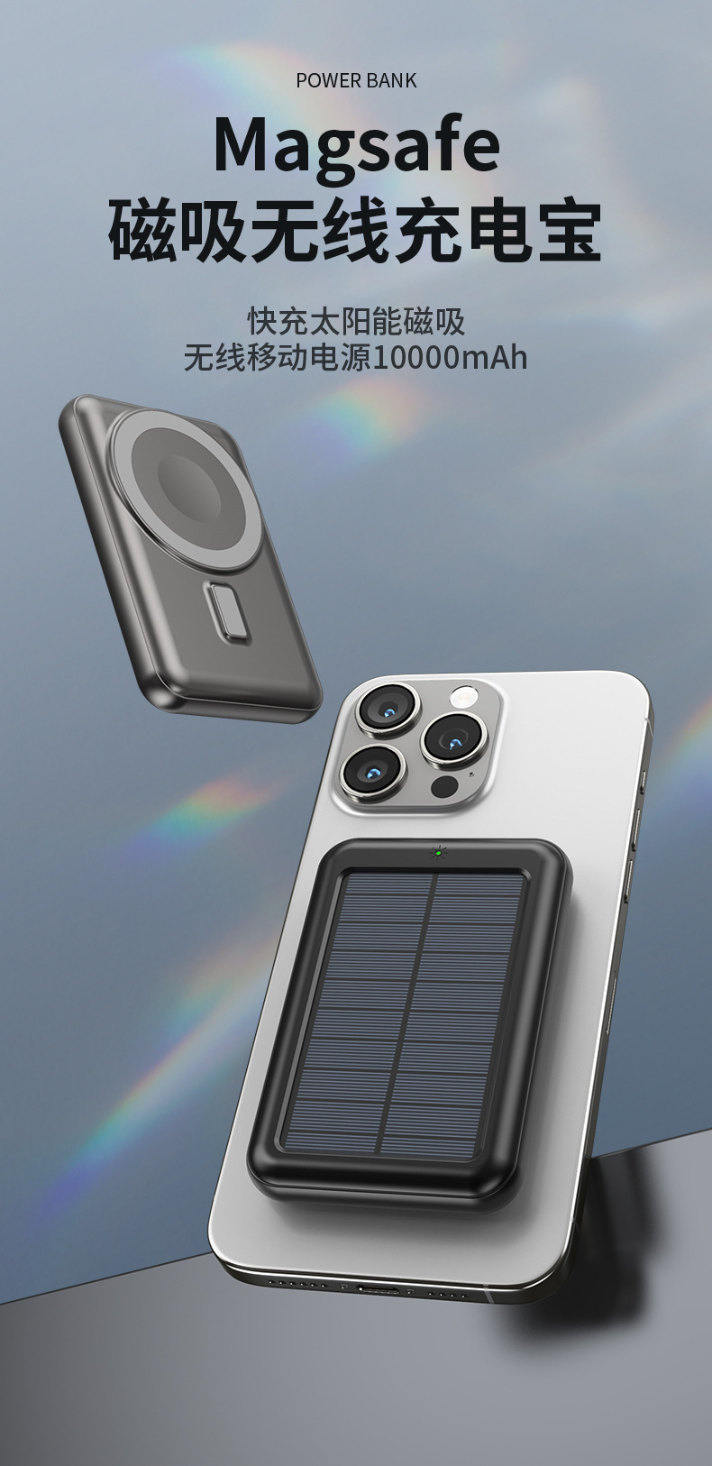Energía solar transfronteriza ligera Magsafe magnética inalámbrica carga rápida tesoro de carga mini fuente de alimentación móvil 20000 mAh