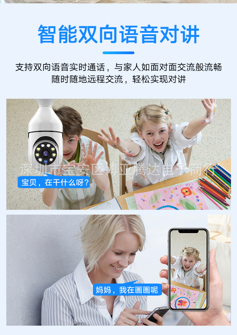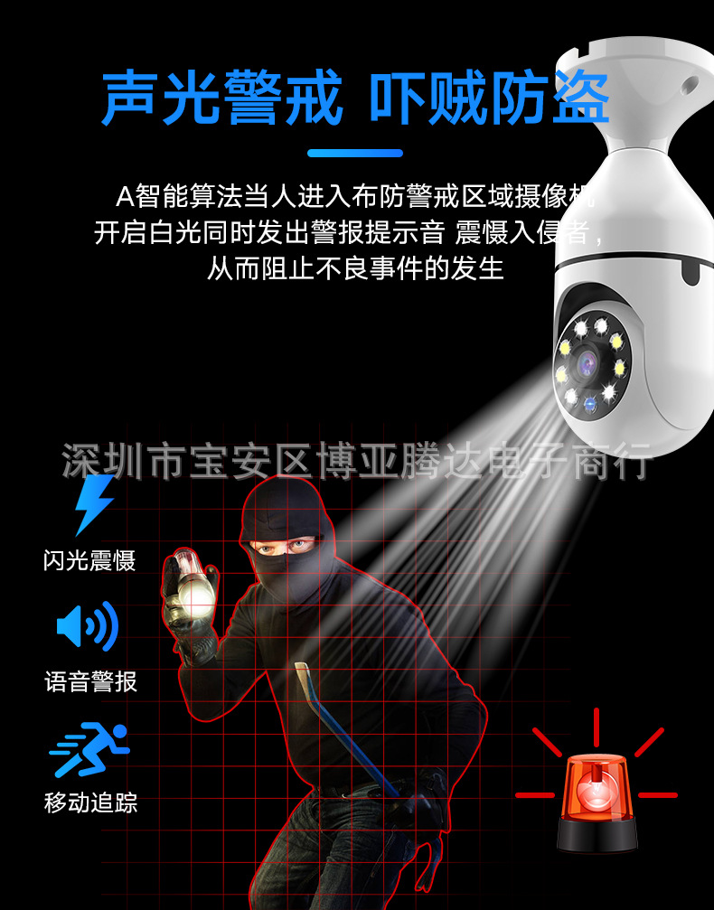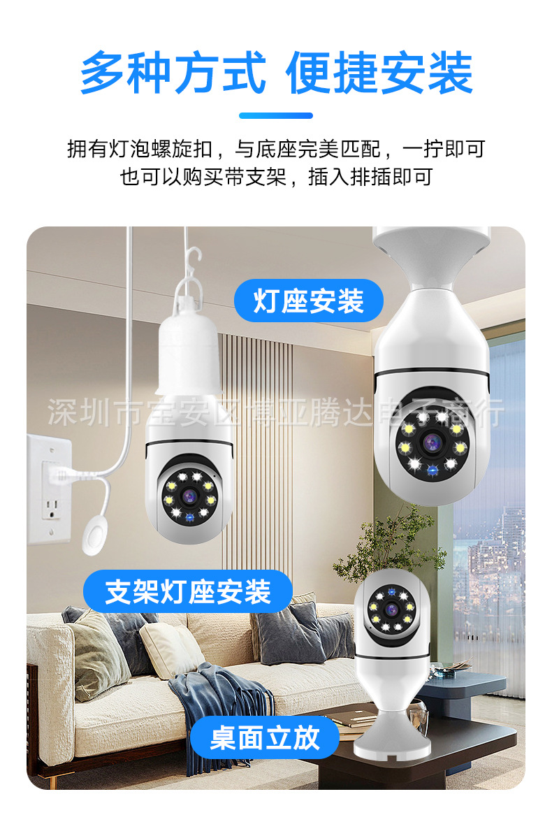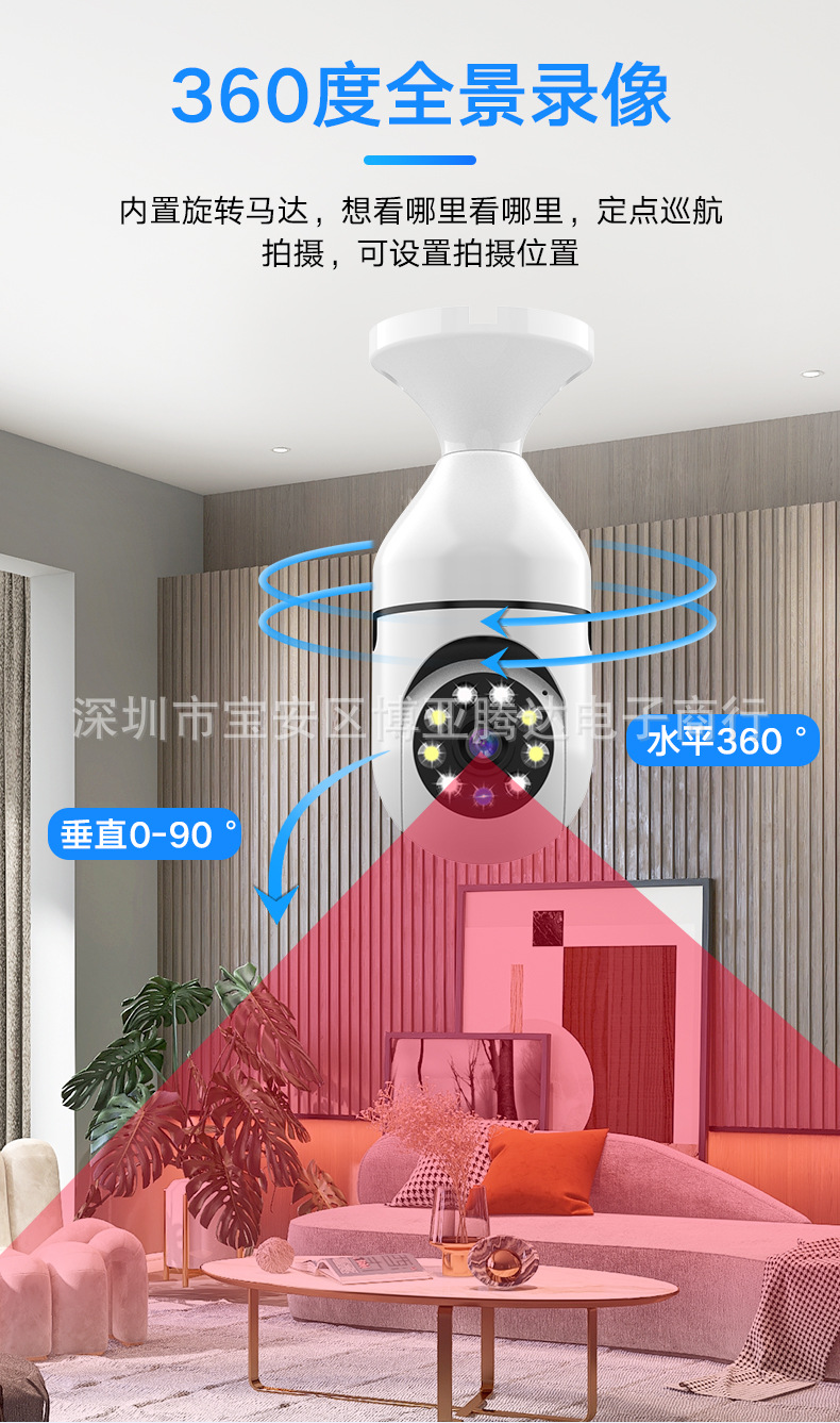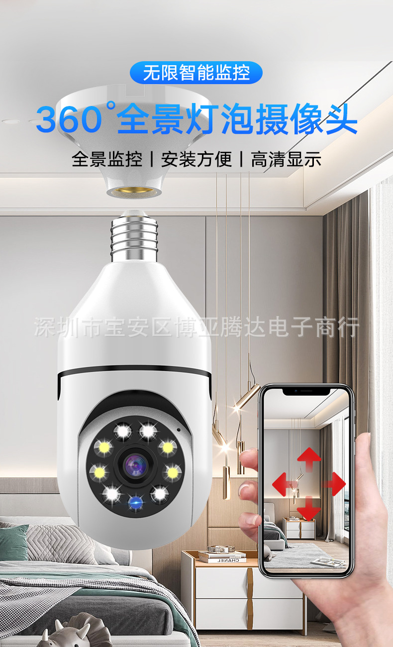 Cámara Bombilla E27 con Visión Nocturna Infrarroja Inalámbrica, Monitoreo WIFI de 360 Grados, Lente de Seguridad para el Hogar, Alta Definición 1080p