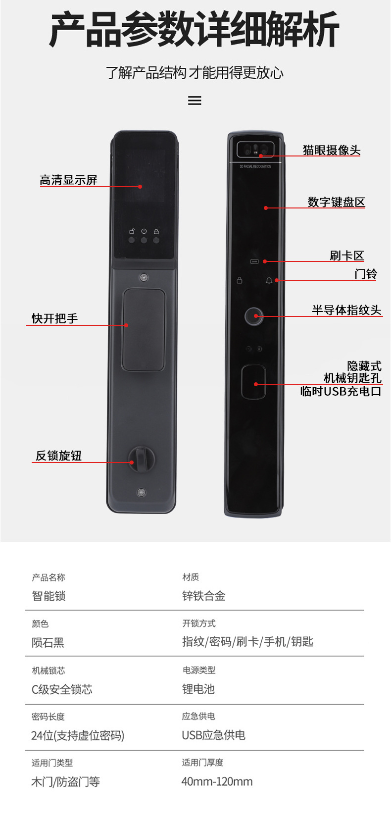 Identificación facial de huellas digitales cerradura puerta antirrobo doméstica cerradura electrónica cerradura de contraseña inteligente automática cerradura de puerta doméstica puerta de entrada