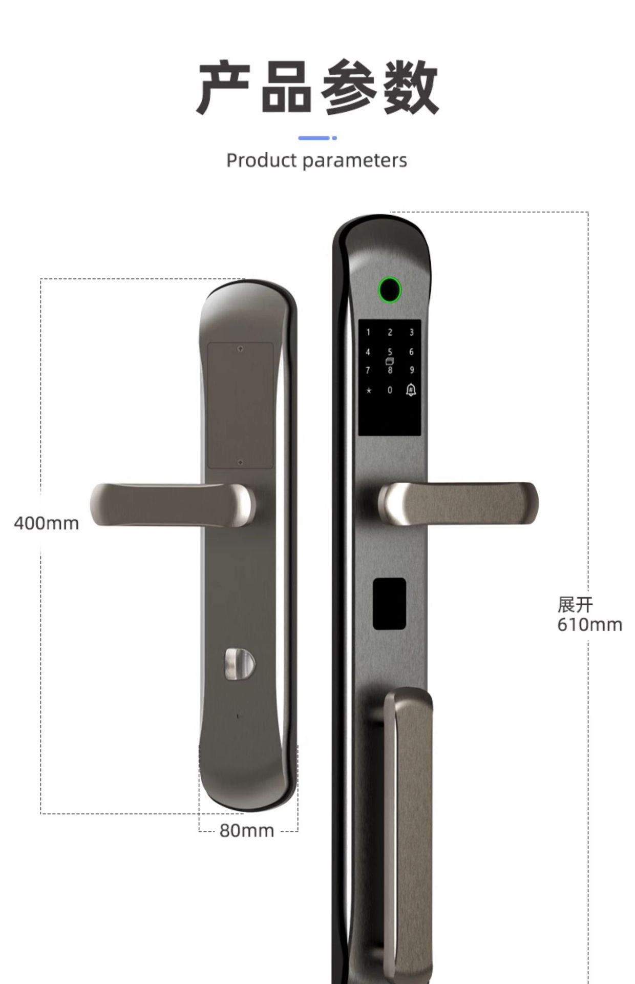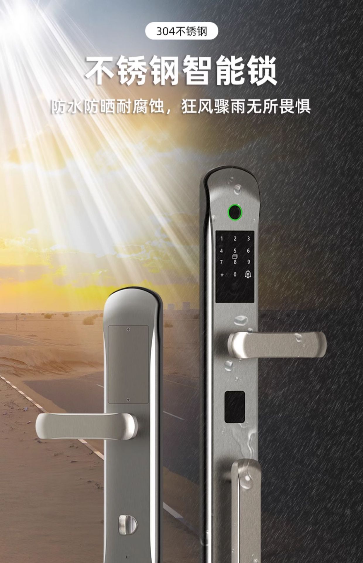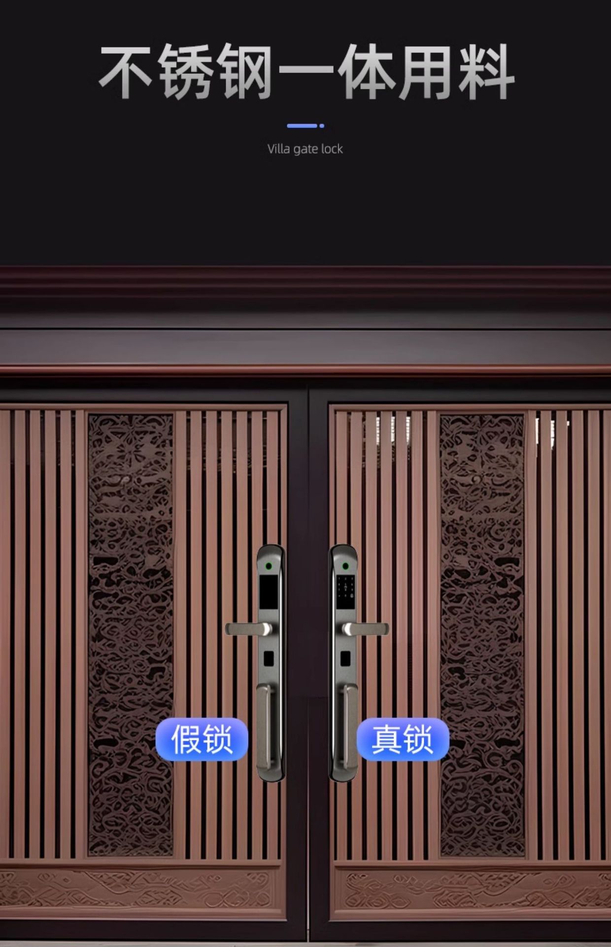 Villa puerta de dos puertas puerta de lado a lado cerradura de huellas dactilares manija de puerta de aleación de zinc cerradura de contraseña antirrobo panel de acero inoxidable largo