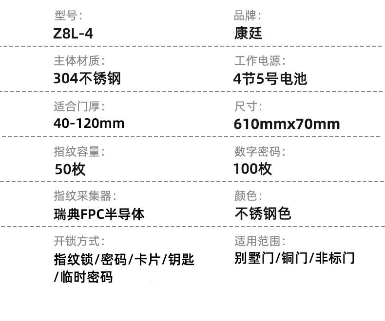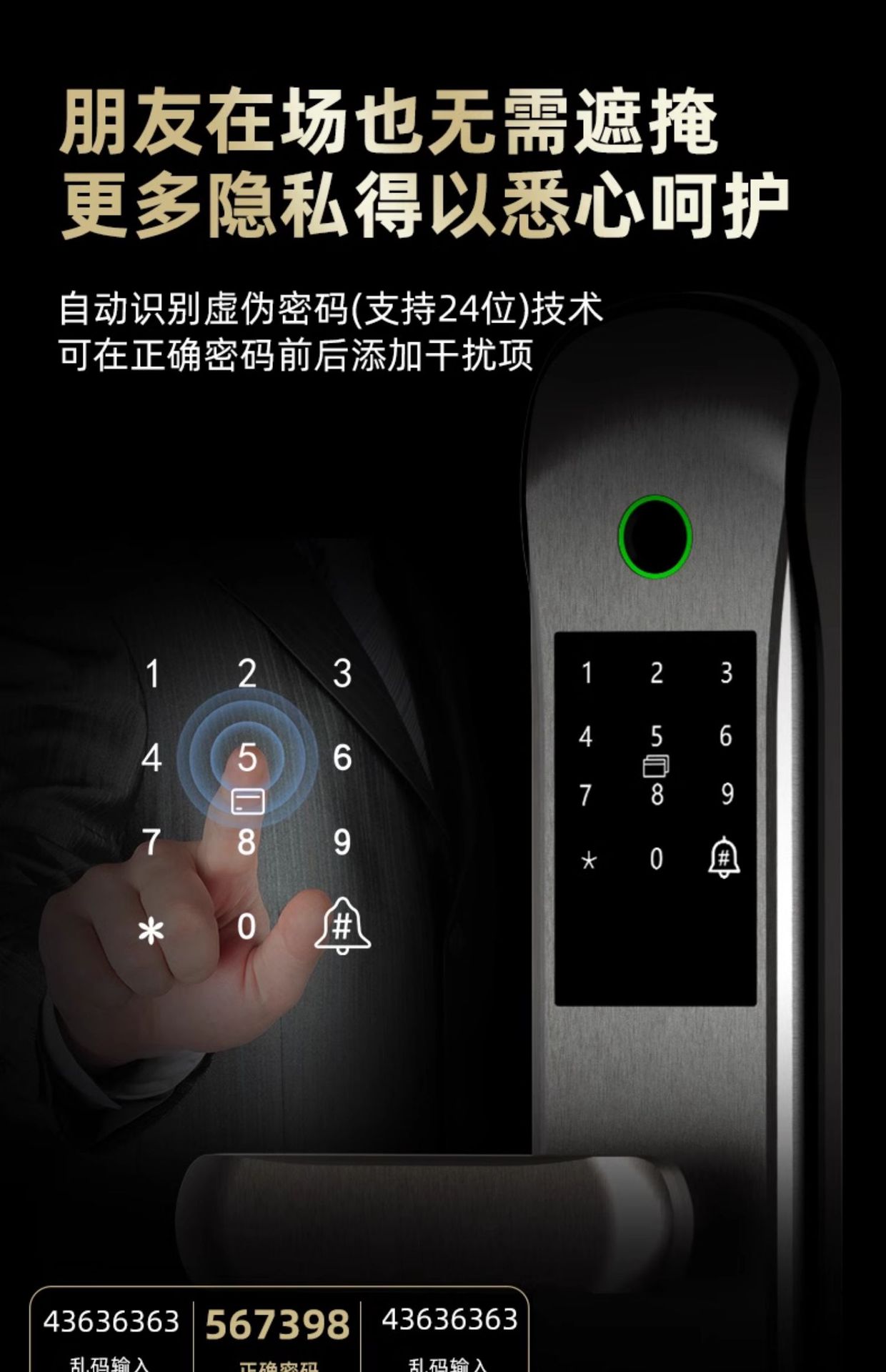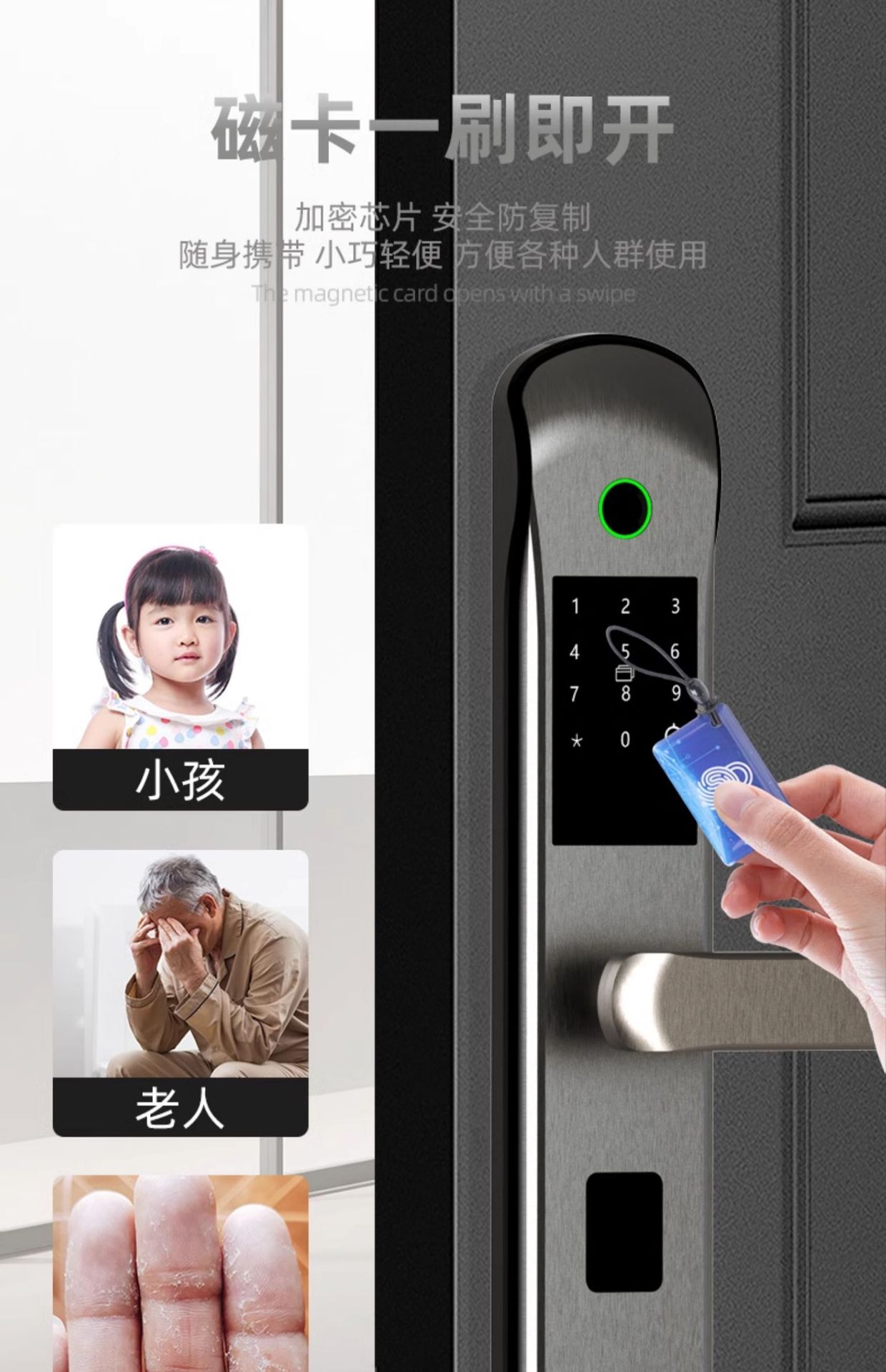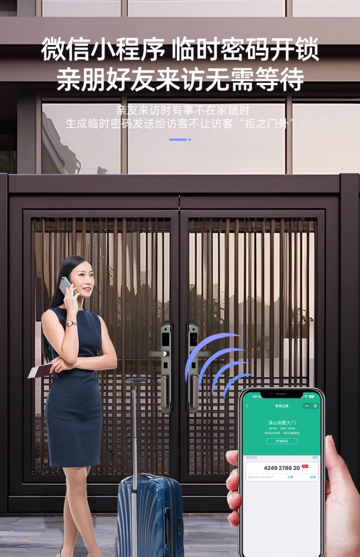 Villa puerta de dos puertas puerta de lado a lado cerradura de huellas dactilares manija de puerta de aleación de zinc cerradura de contraseña antirrobo panel de acero inoxidable largo