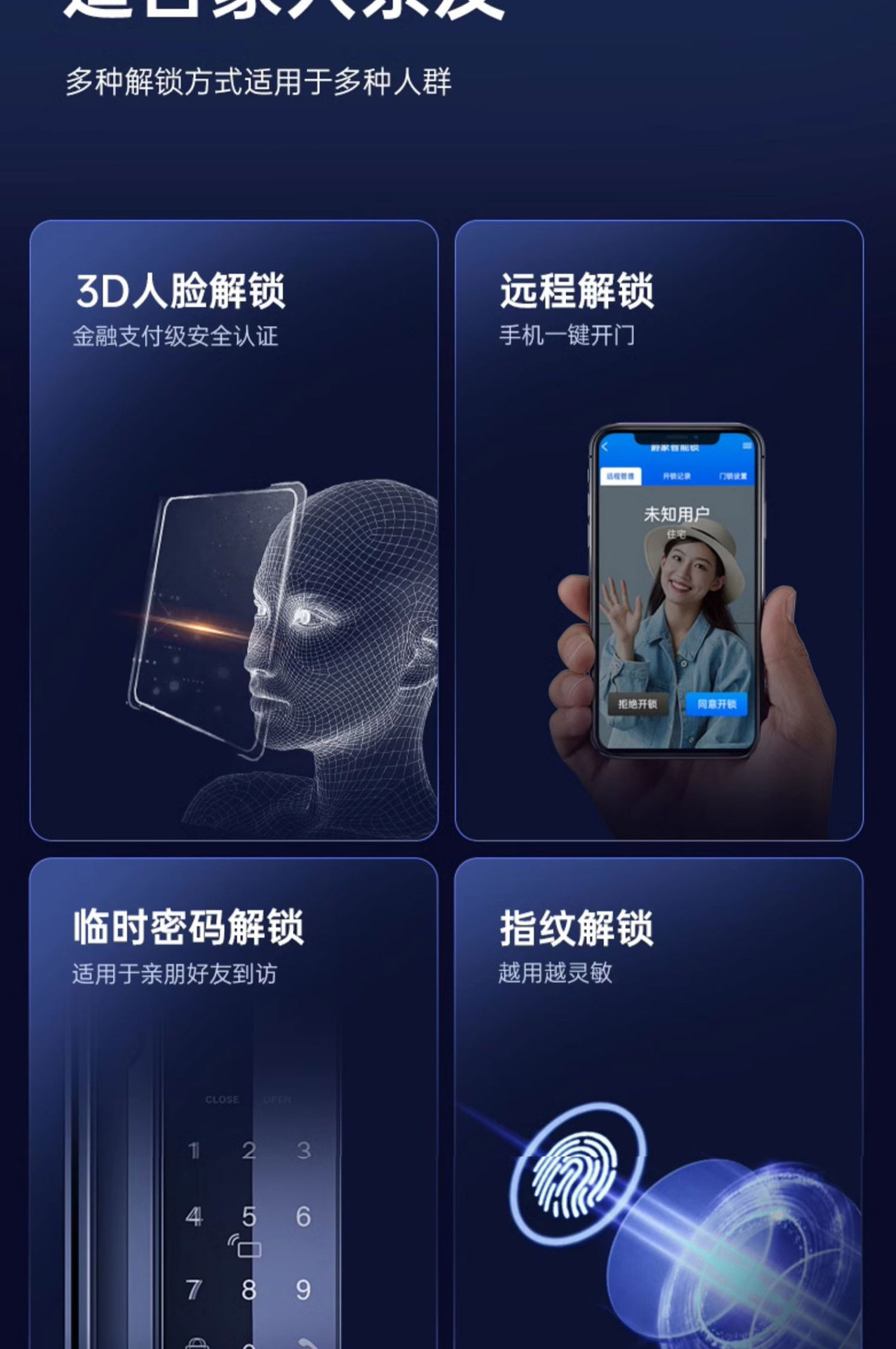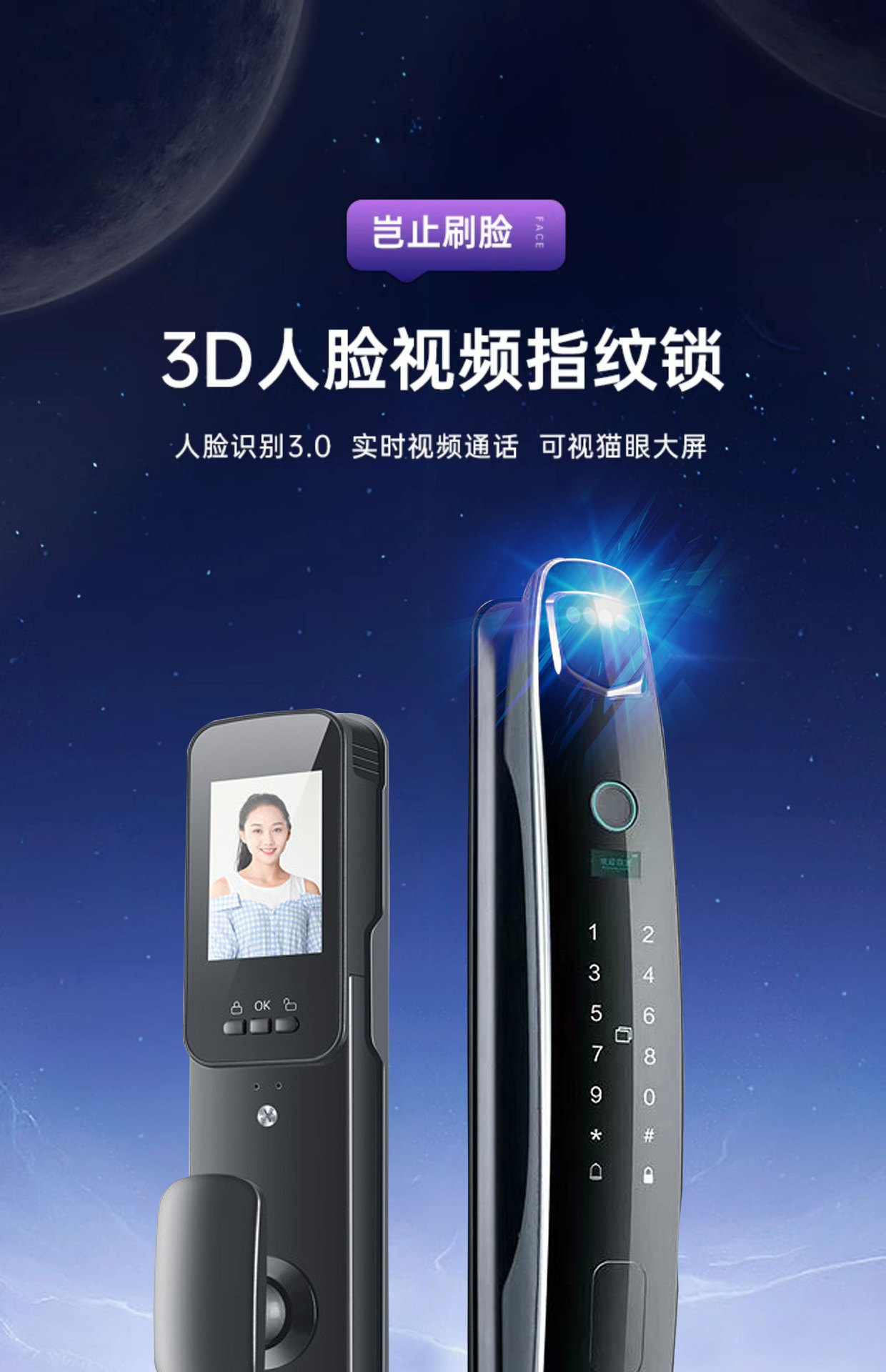 Reconocimiento facial 3D monitoreo huella digital bloqueo automático contraseña Bloqueo Electrónico del hogar bloqueo inteligente captura intercomunicador puerta inteligente