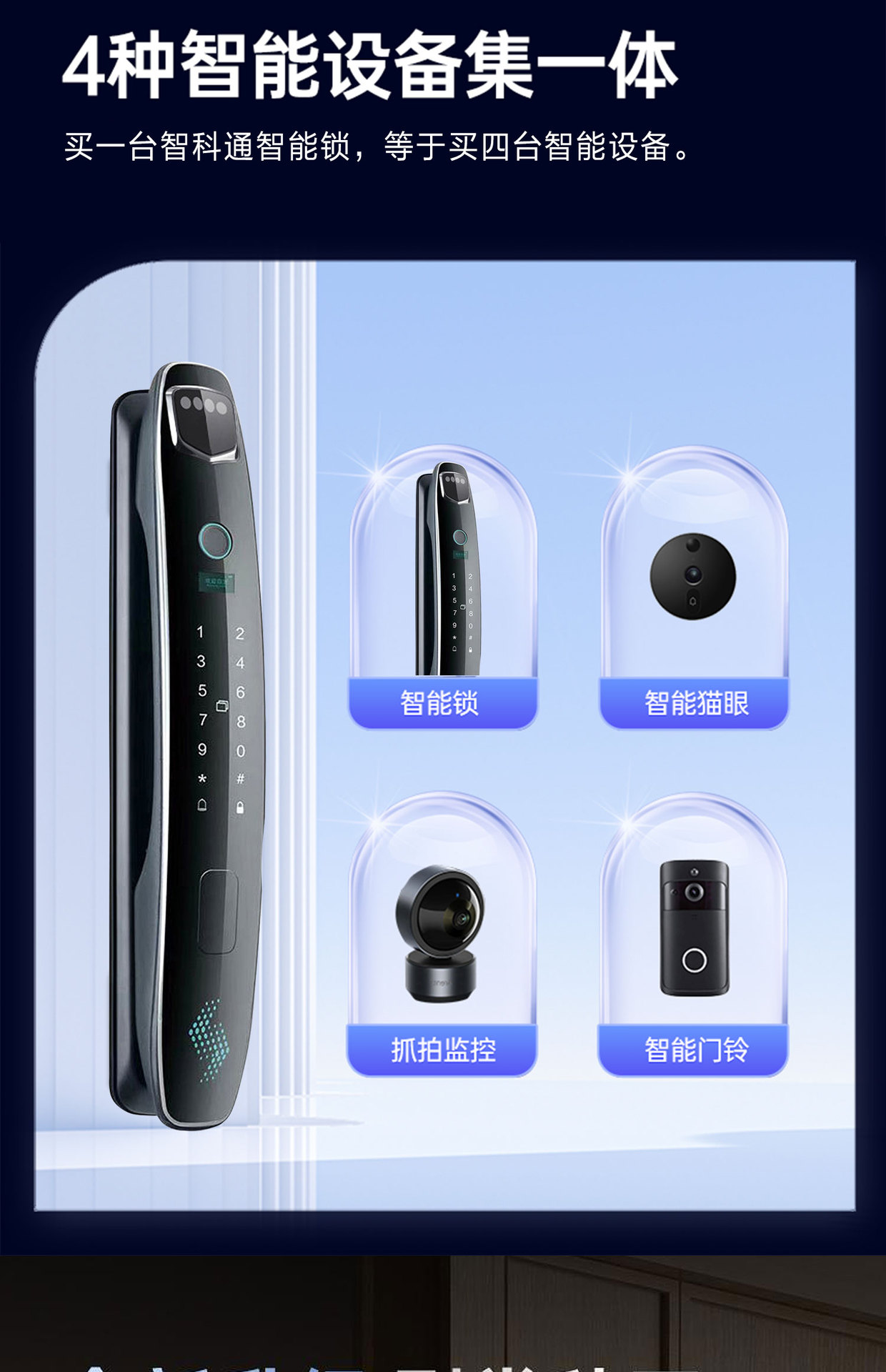 Modelo cs7 cat eye (apertura remota wifi + huella digital + contraseña + tarjeta de puerta + llave + contraseña temporal)