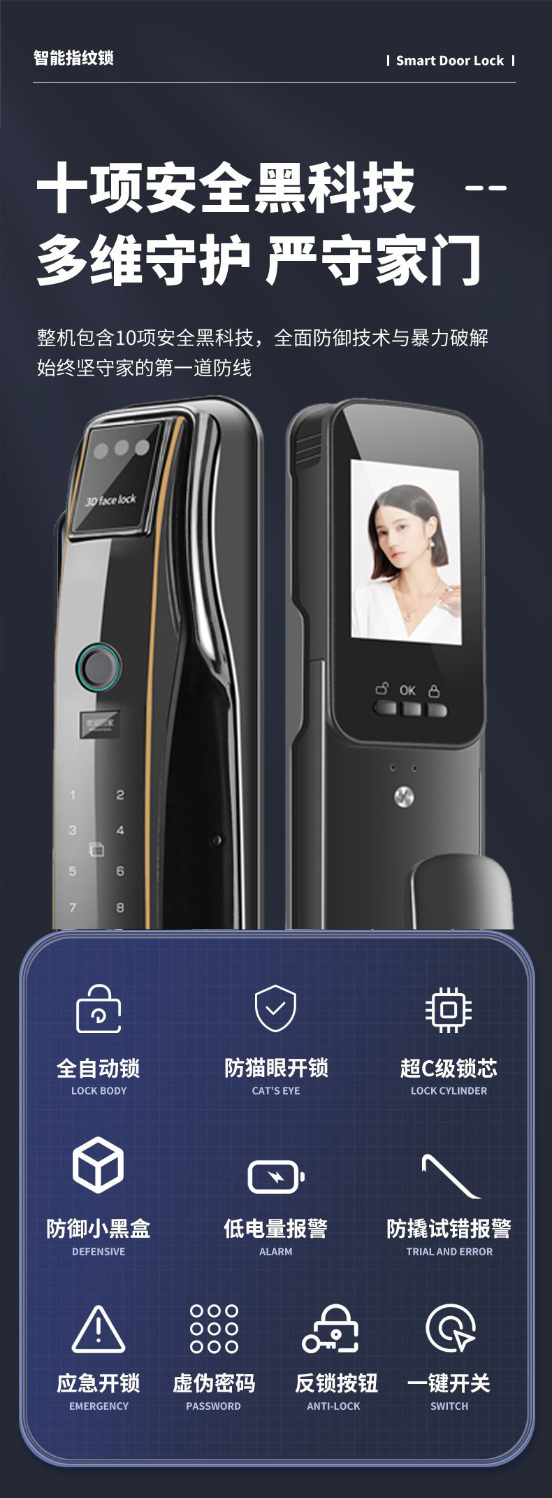 Cerradura de huellas dactilares de reconocimiento facial cerradura de puerta antirrobo al por mayor cerradura de puerta inteligente cerradura de contraseña electrónica doméstica cerradura inteligente visual ojo de gato