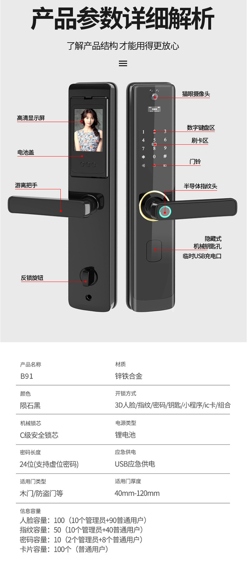 Cerradura con huella dactilar, cerradura inteligente antirrobo para puerta de casa, cerradura electrónica para puerta de entrada, cerradura con contraseña de ingeniería, cerradura con huella dactilar de semiconductores