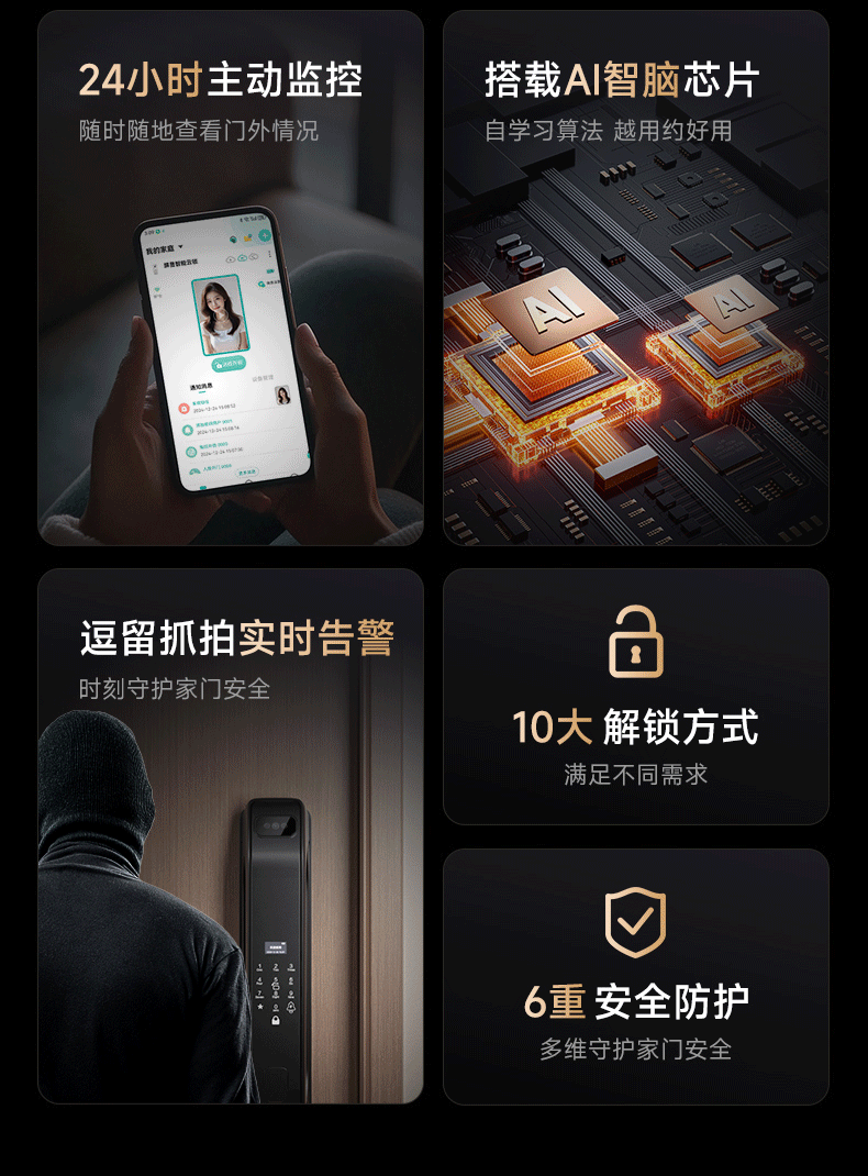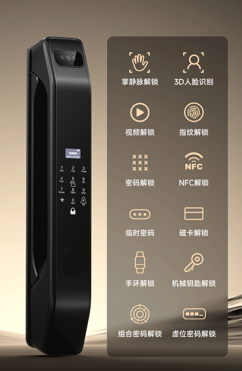 Cerradura de puerta inteligente de huellas digitales 3D automática cerradura electrónica de identificación de desbloqueo remoto
