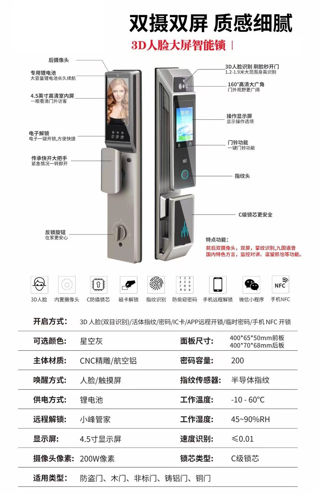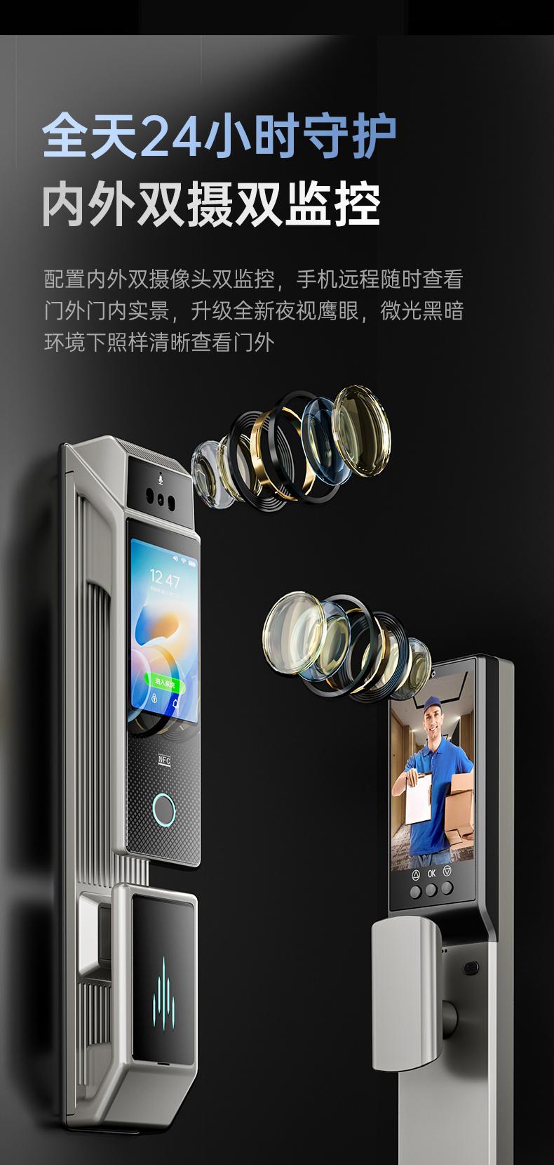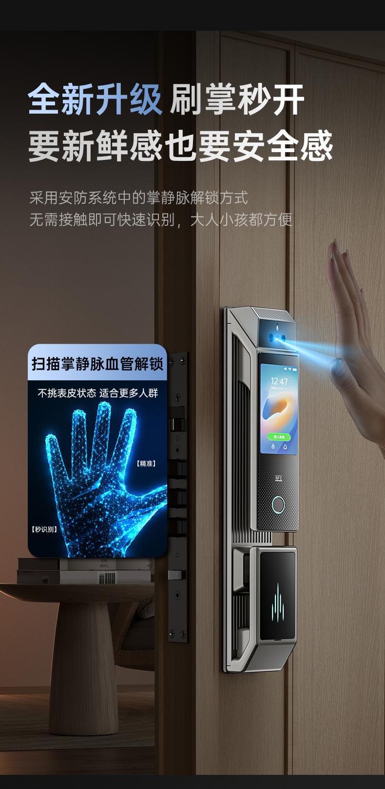 Doble pantalla, doble cámara, vena de la palma, cerradura de huella digital interna y externa, visión nocturna a todo color, reconocimiento facial, cerradura inteligente de la vena de la palma