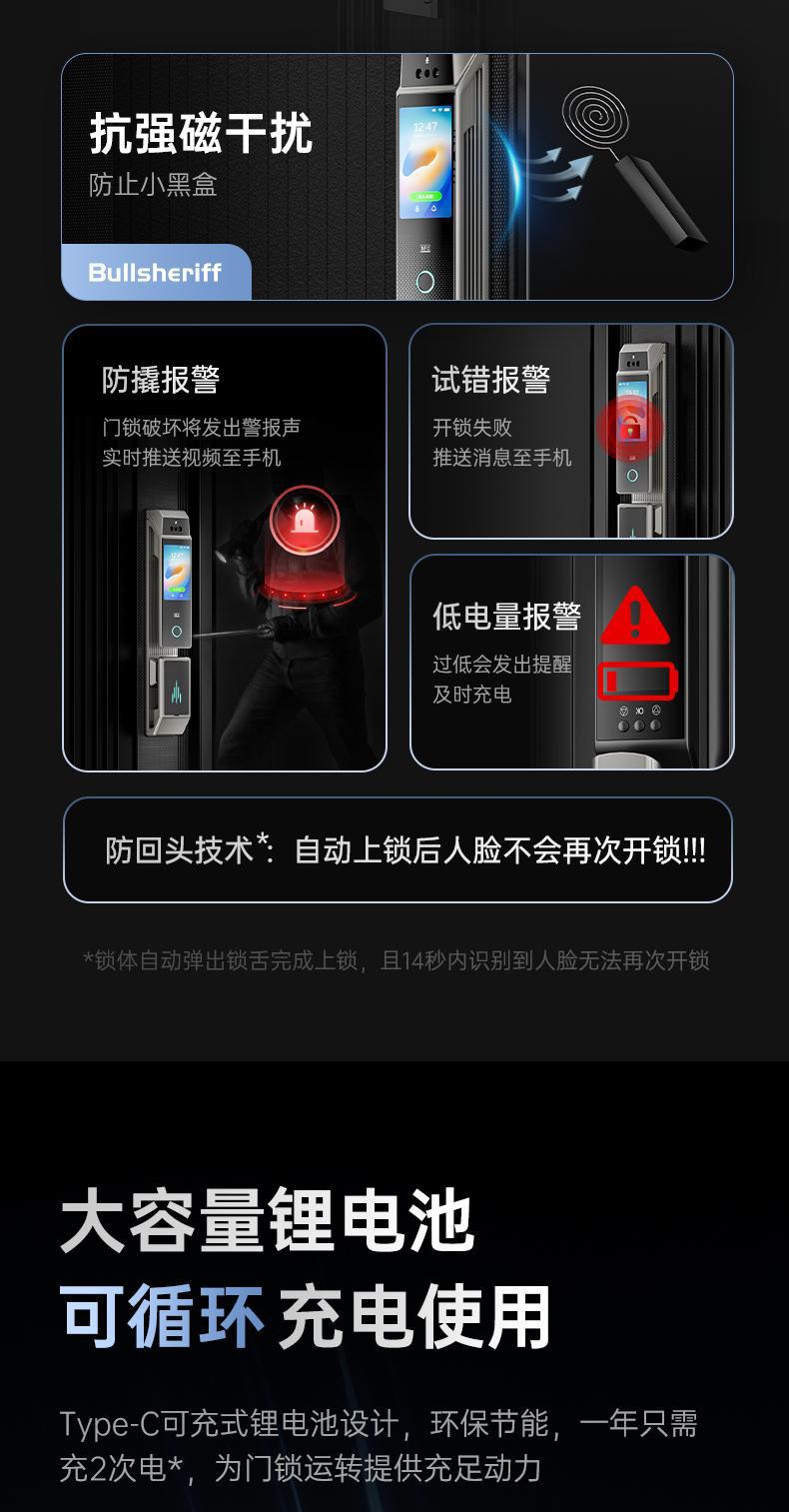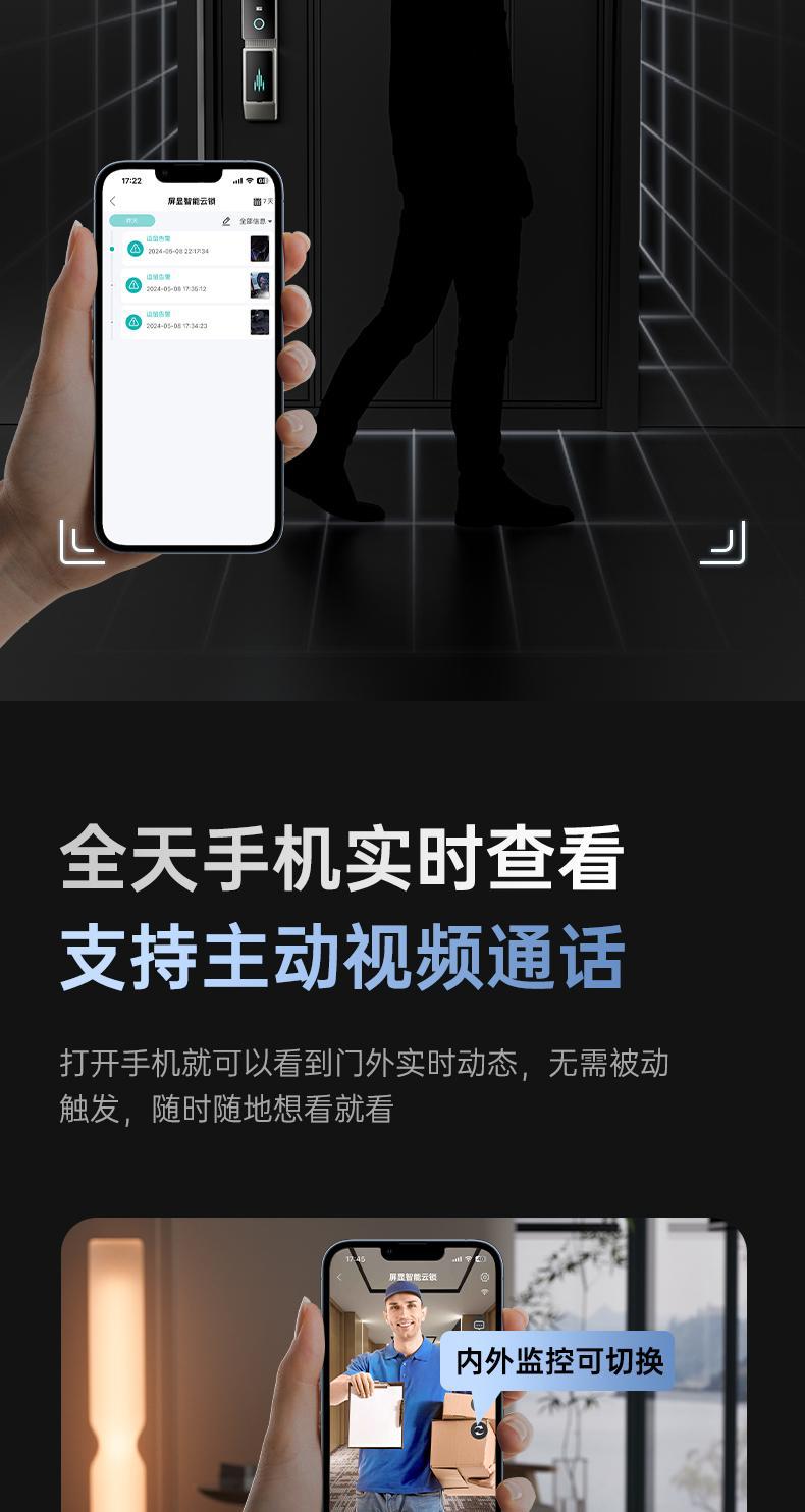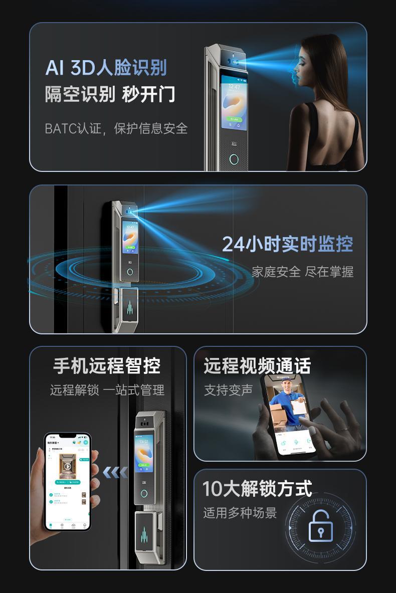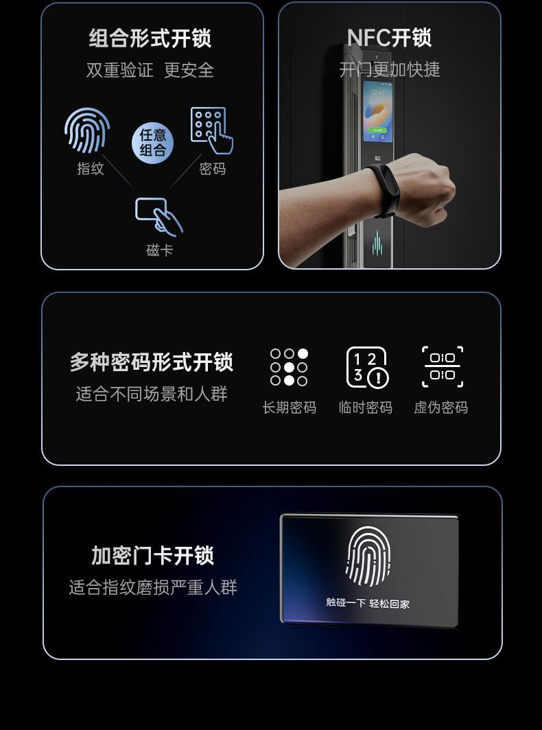 Doble pantalla, doble cámara, vena de la palma, cerradura de huella digital interna y externa, visión nocturna a todo color, reconocimiento facial, cerradura inteligente de la vena de la palma