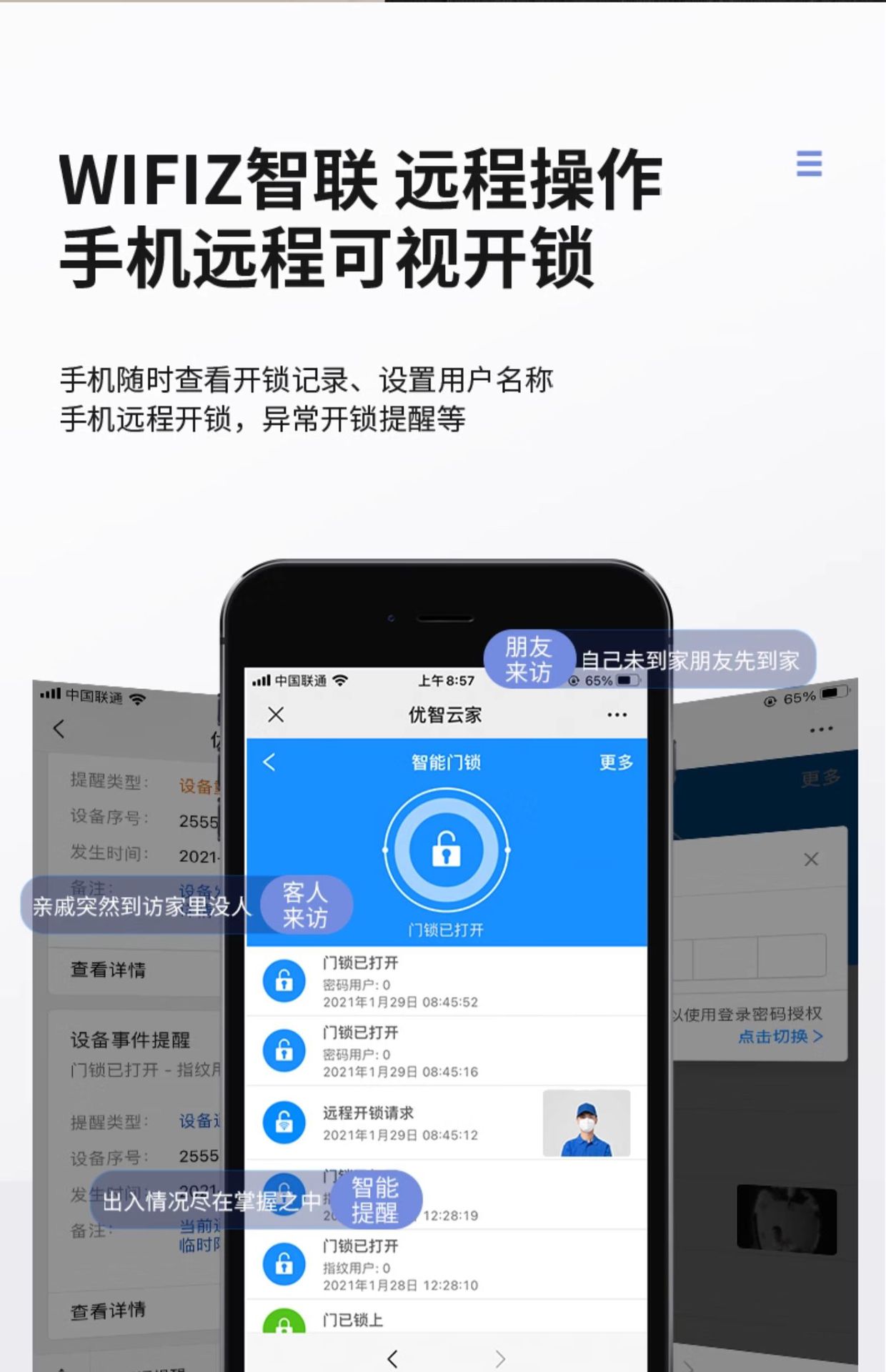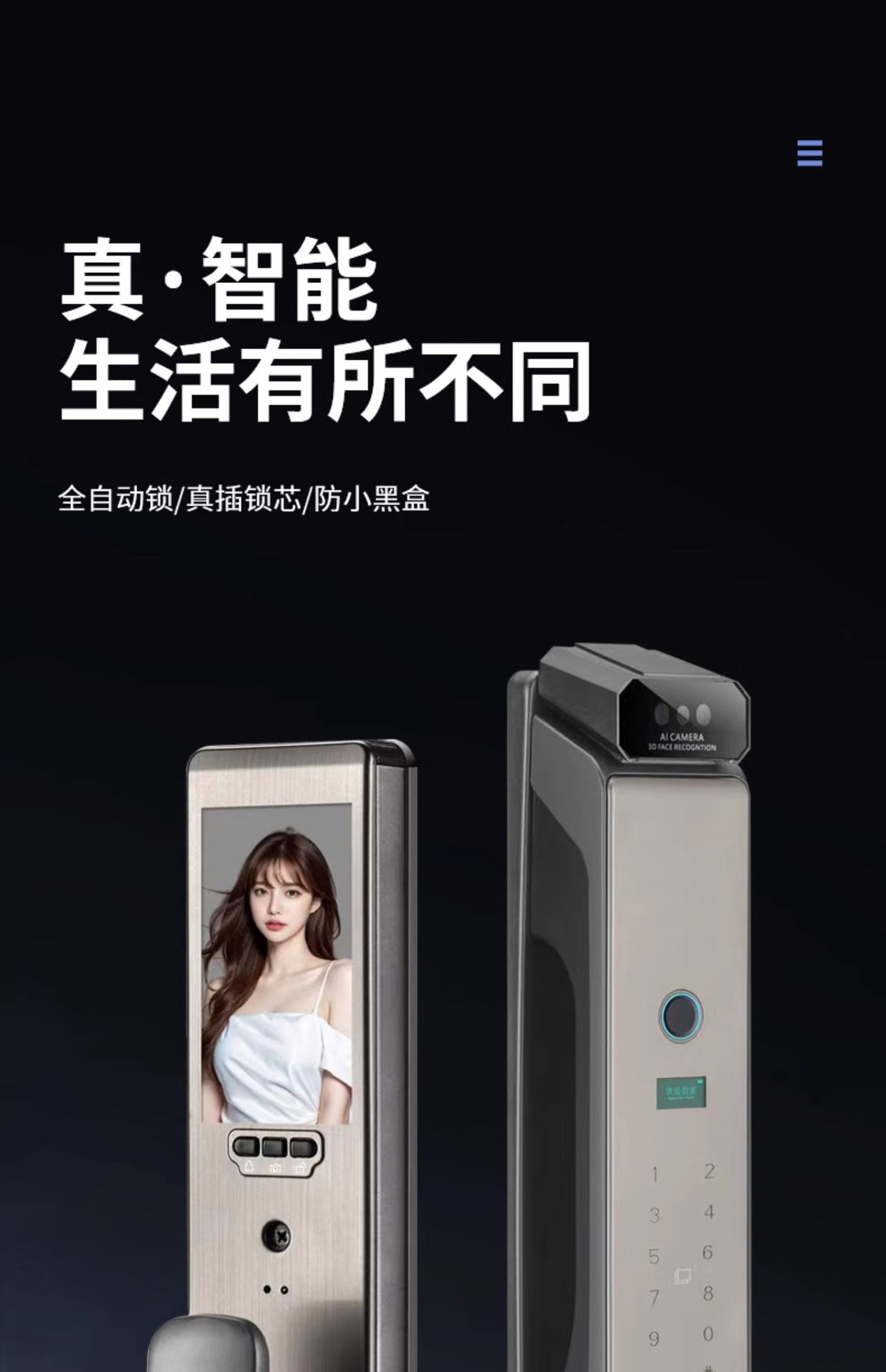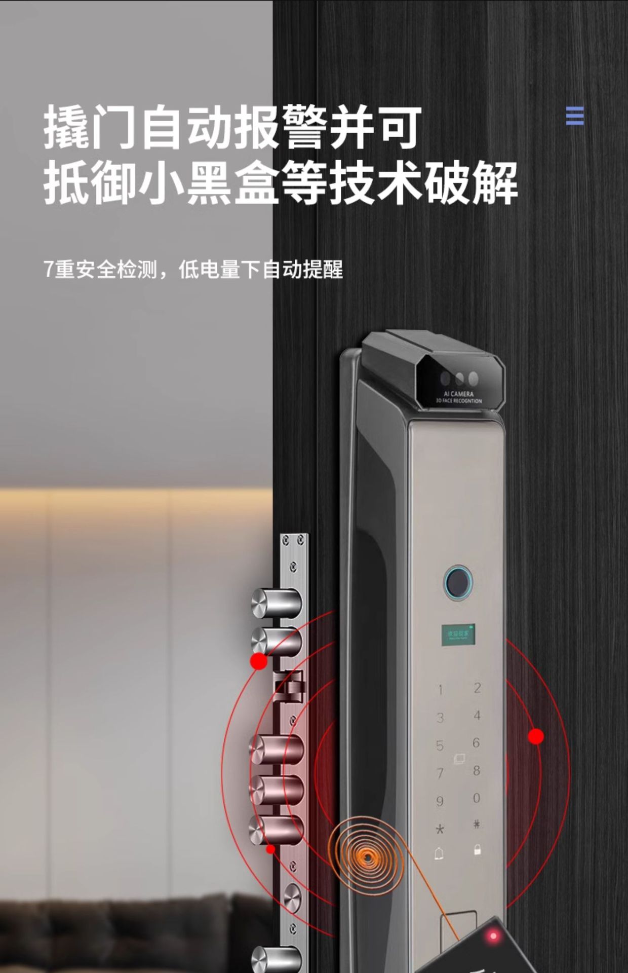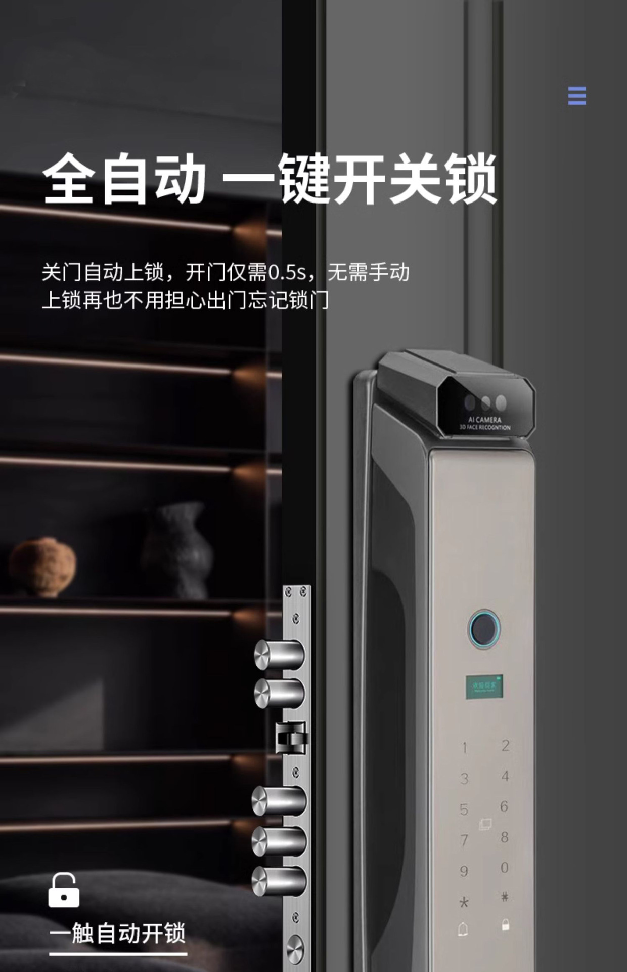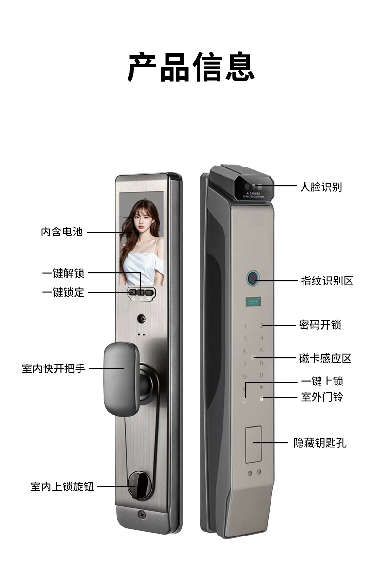 Reconocimiento facial 3D intercomunicación de monitoreo de huellas dactilares bloqueo de contraseña automático cerradura inteligente electrónica doméstica captura de pantalla grande