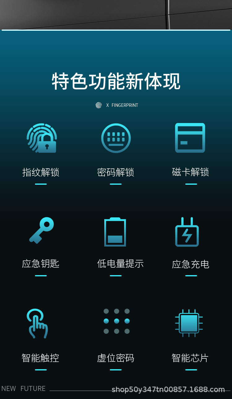 Cerradura de huella digital antiojos de gato, resistente al agua y a prueba de humedad, cerradura de contraseña deslizante totalmente automática, cerradura de puerta antirrobo para el hogar, cerradura electrónica