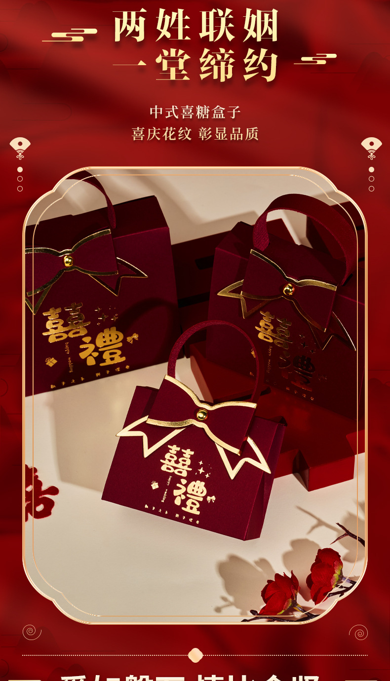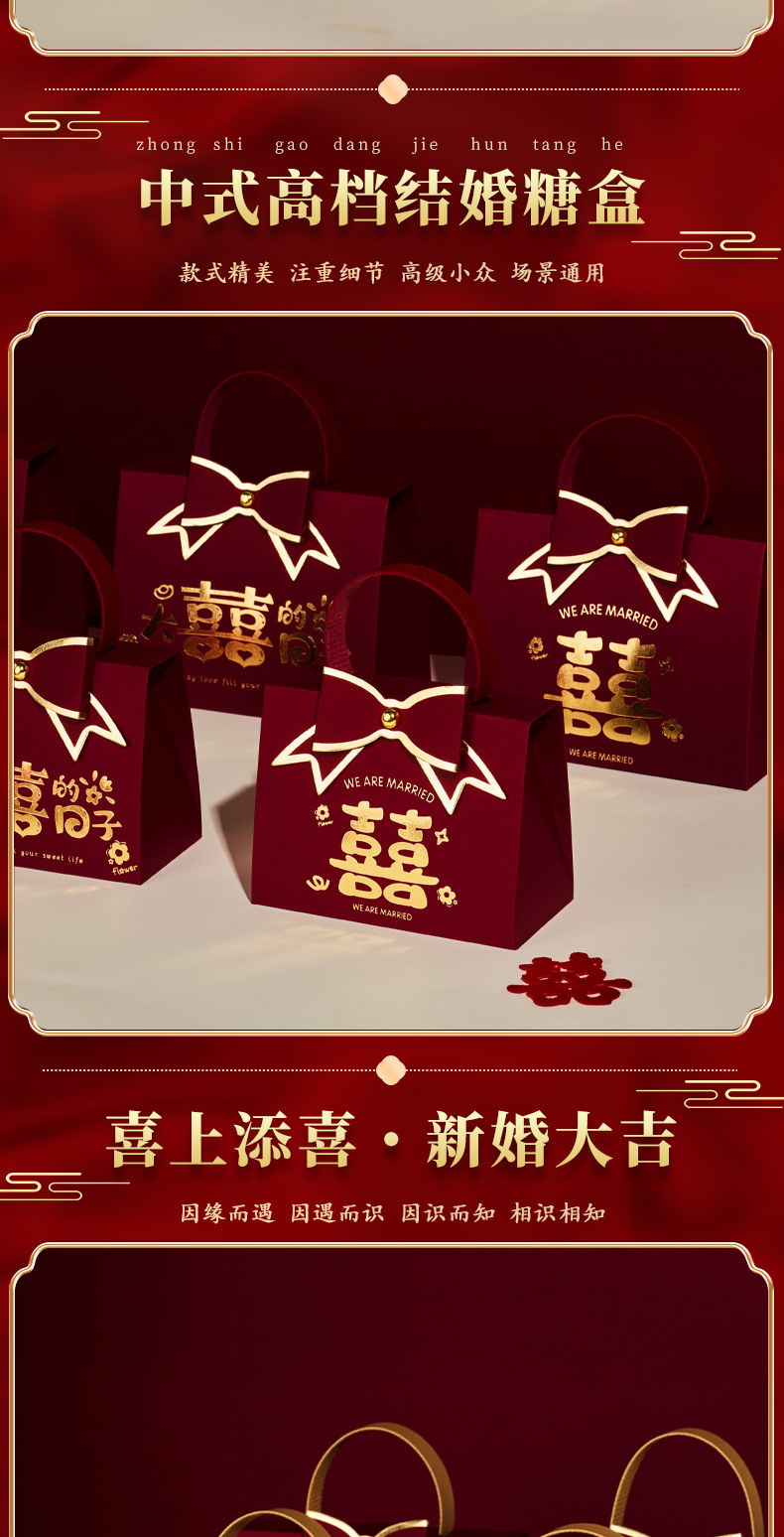 Caja de dulces de boda 2026 nuevo estilo chino de alta sensación caja de regalo de boda cajas de dulces de gran tamaño cajas vacías especiales de boda
