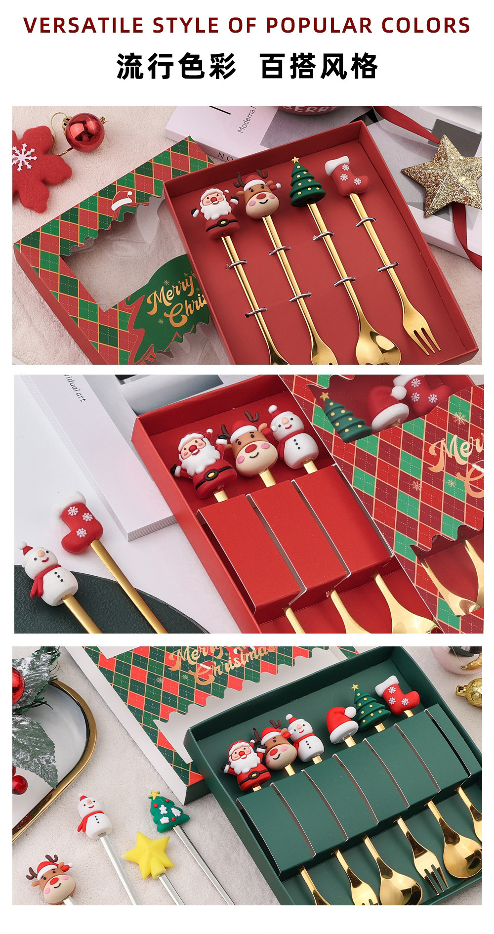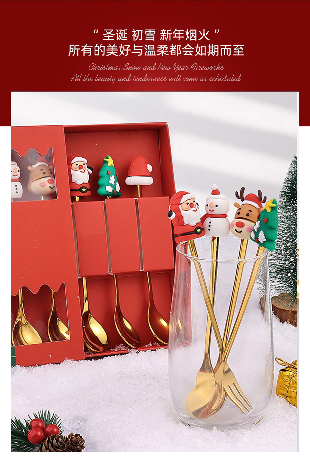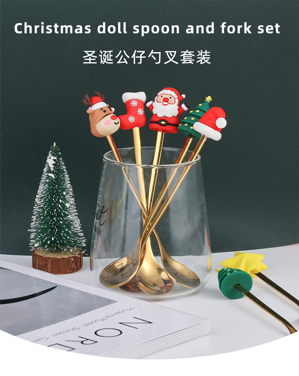 Cuchara de Navidad transfronteriza, cuchara de postre, regalo de Navidad, muñeca de Papá Noel, cubiertos, promoción de vacaciones