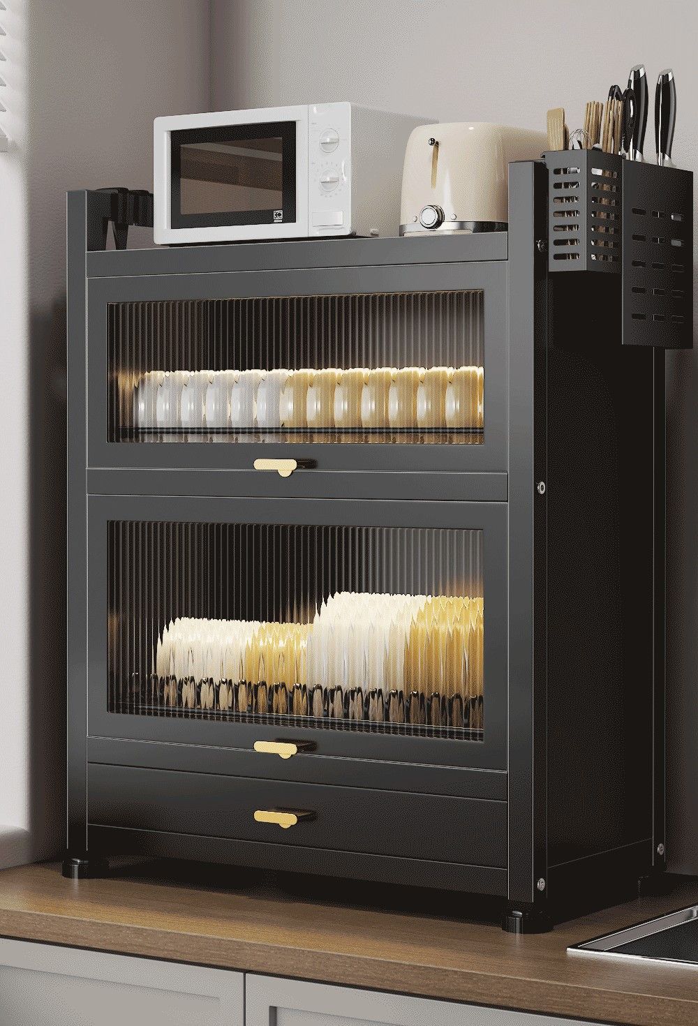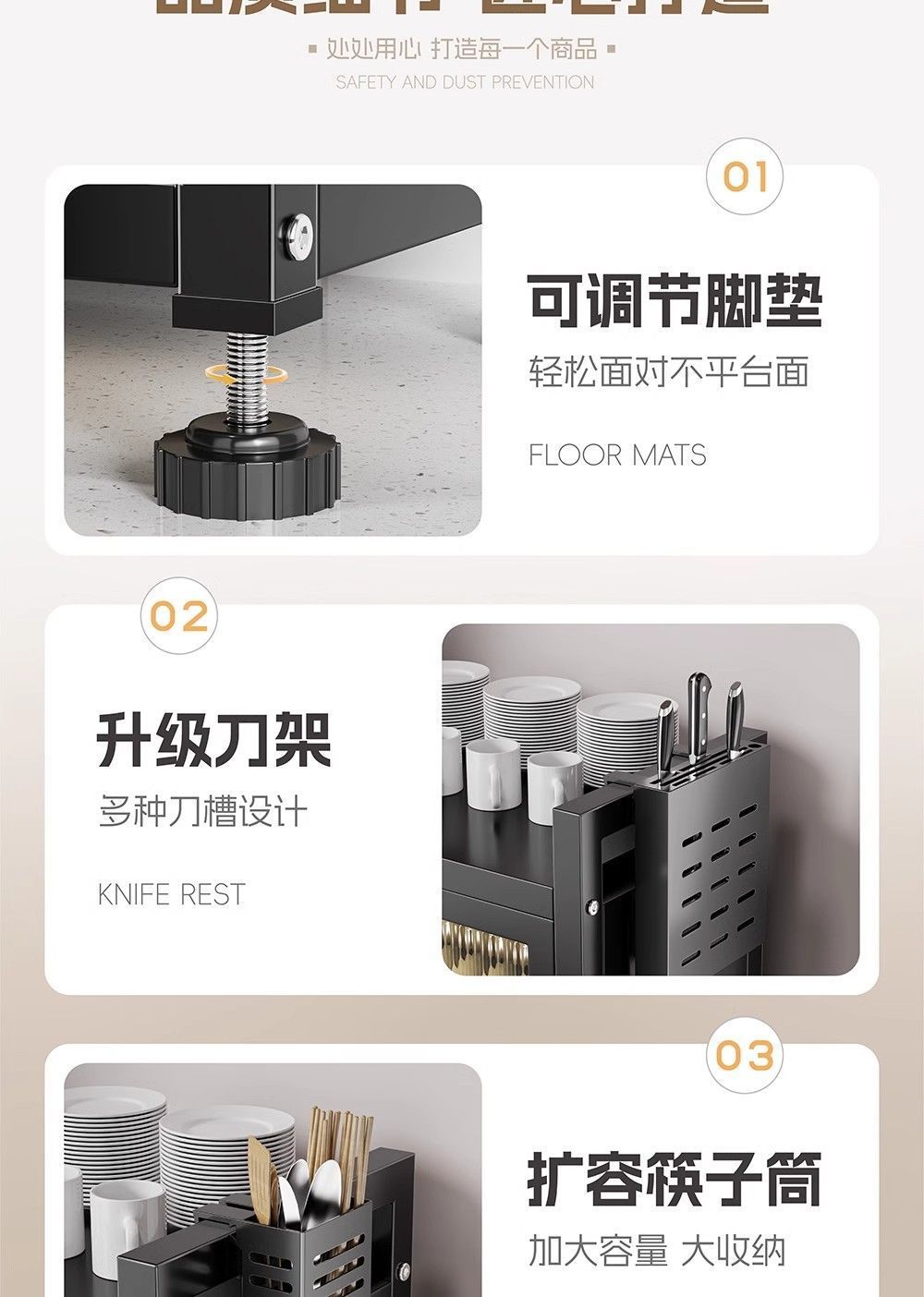 Estante multifuncional de cocina, estante de platos de mesa multicapa, estante de drenaje, estante de platos, gabinete doméstico, caja de almacenamiento de palillos de tres capas