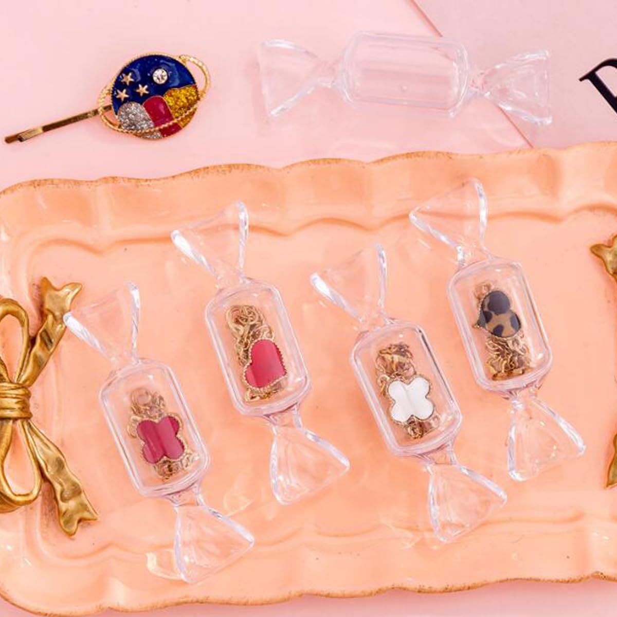 Caja de almacenamiento transparente en forma de caramelo mini anillo portátil pendientes caja de joyería caja de joyería pequeña