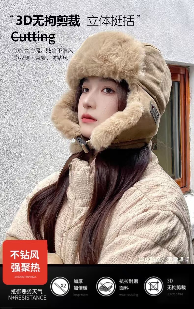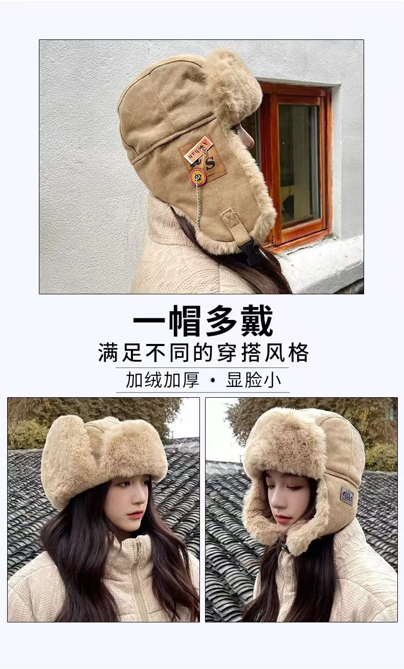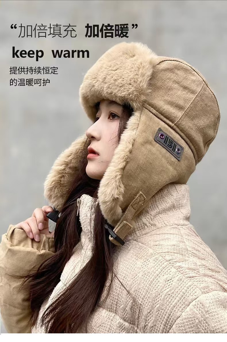 Invierno engrosado gorra de tormenta de moda para hombres y mujeres a prueba de viento cálido gorra de ciclismo de orejas esponjosa cadena gorra de vuelo de algodón