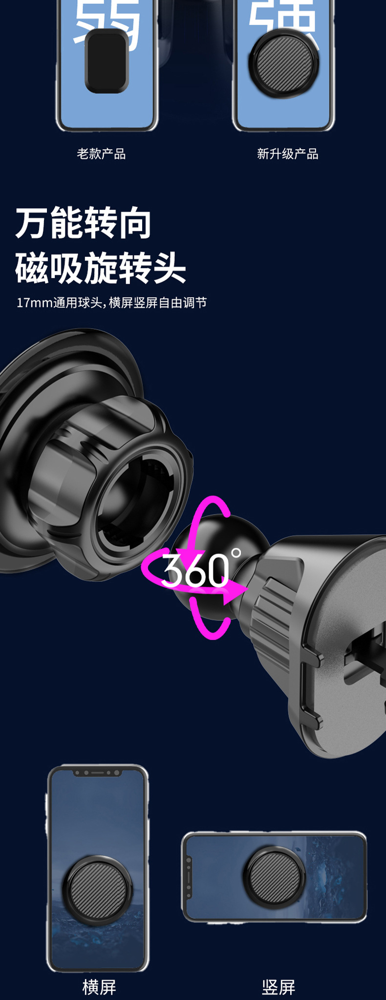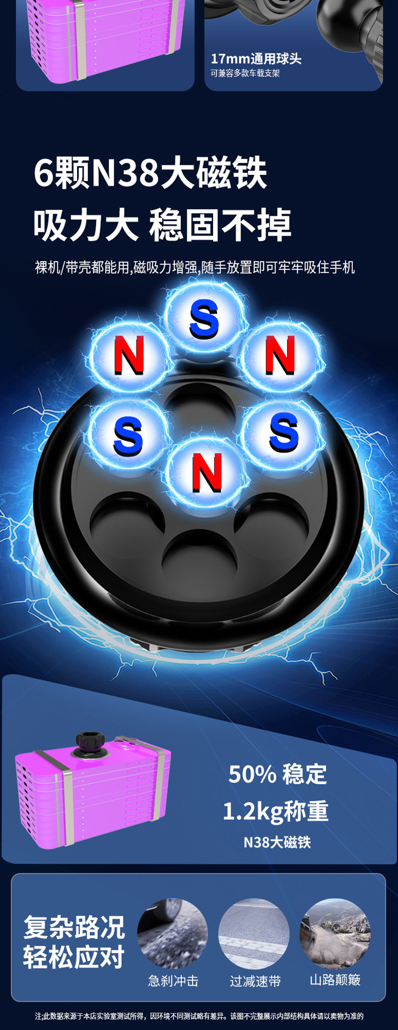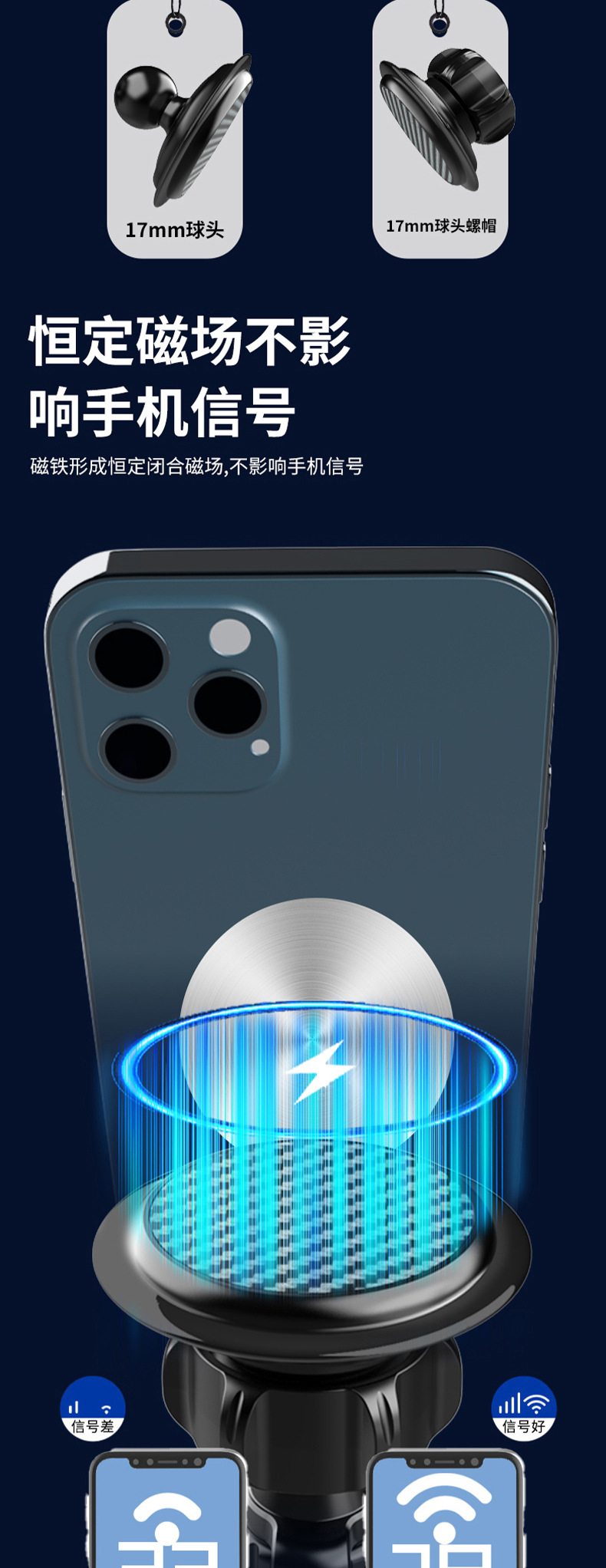 soporte de teléfono móvil de absorción magnética redonda, soporte de teléfono móvil para automóviles, cabeza de bola universal de 17 mm, abrazadera de teléfono móvil magnética universal