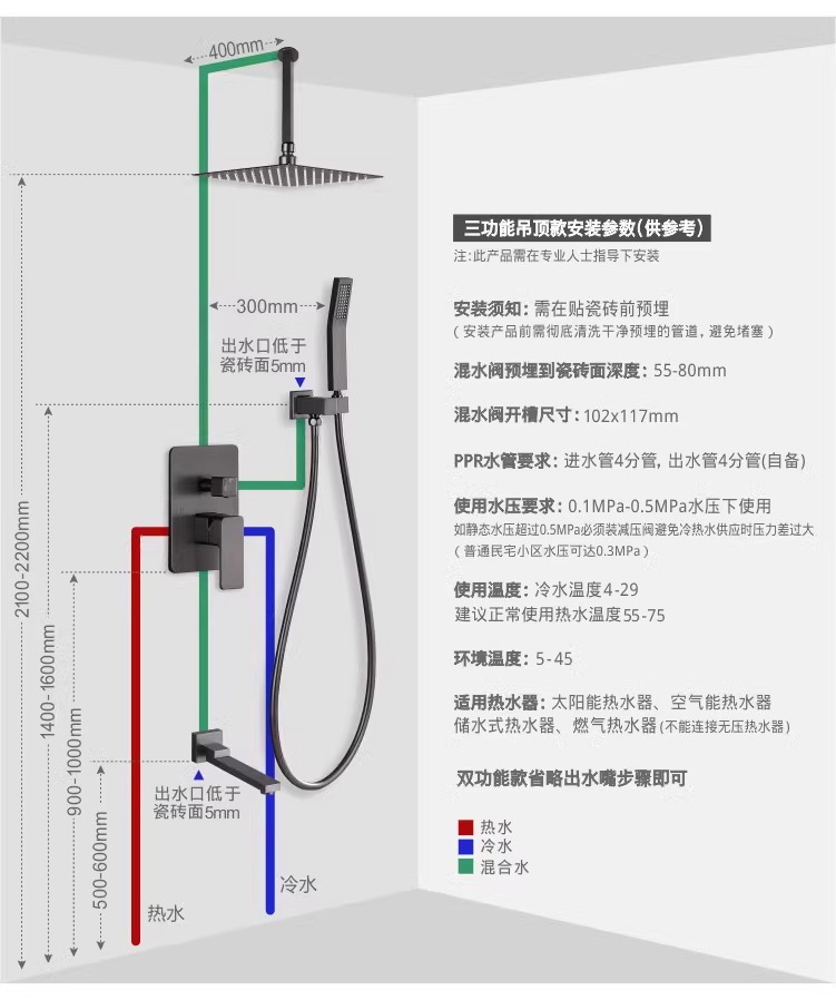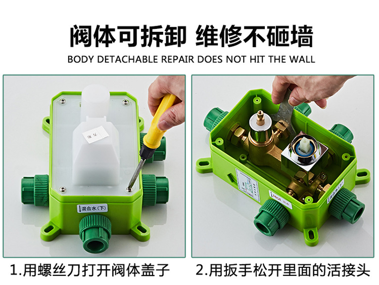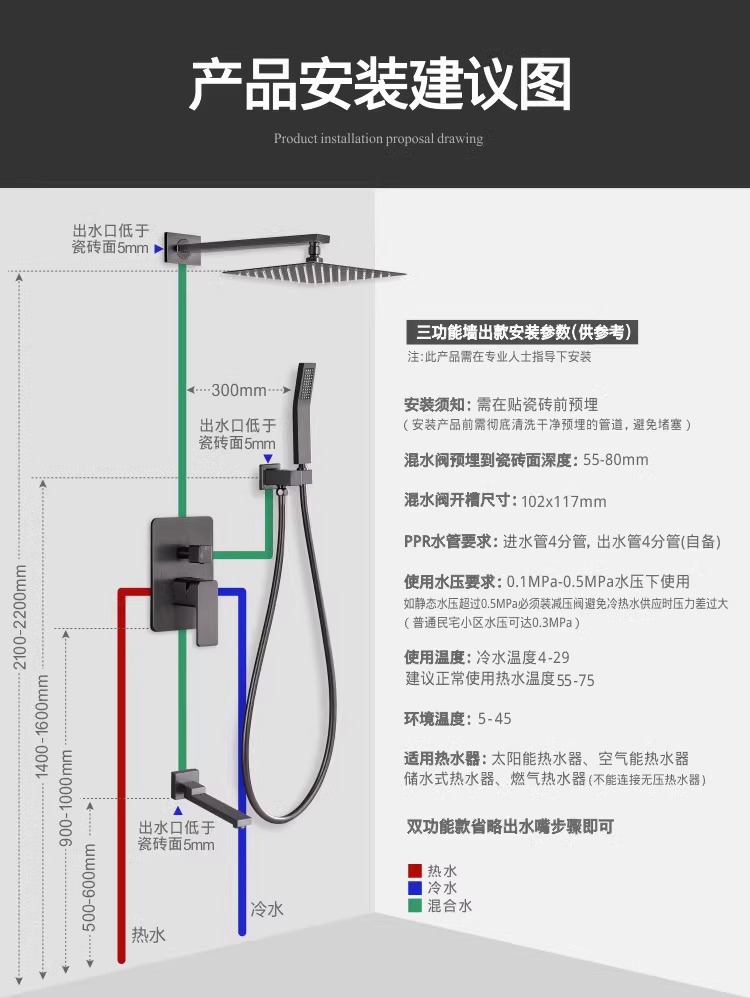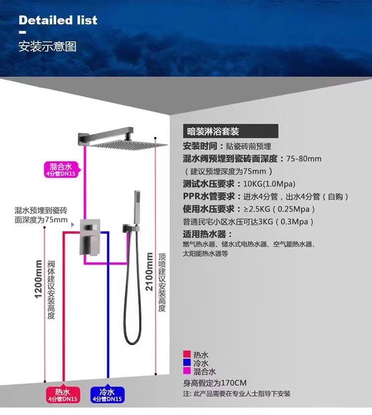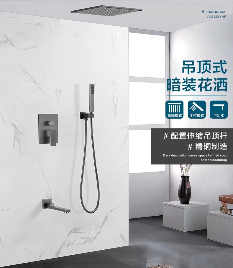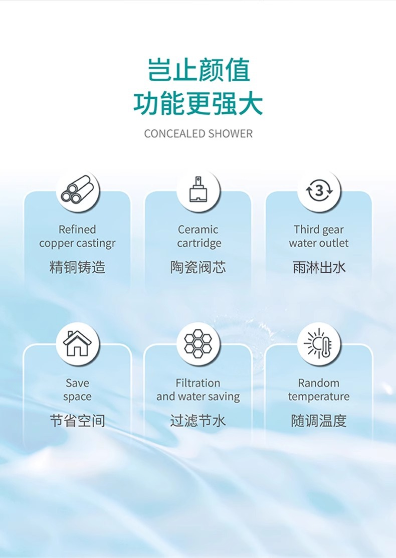 Transfronterizo montaje oculto tipo pared ducha conjunto de ducha oculto incrustado tubo PPR fusión en caliente integrado incrustado todo cobre ducha