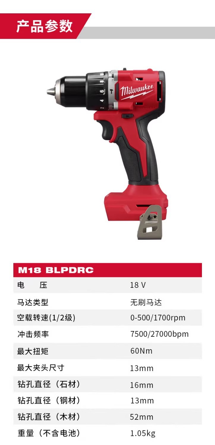 Milwaukee 18V taladro de impacto de batería de litio recargable compacto de grado industrial sin escobillas