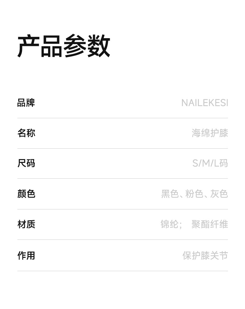 | Color | Un par de rodillas gris-púrpura [esponja anticolisión], un par de rodillas negras [esponja anticolisión], un par de rodillas rosadas [esponja anticolisión] |
