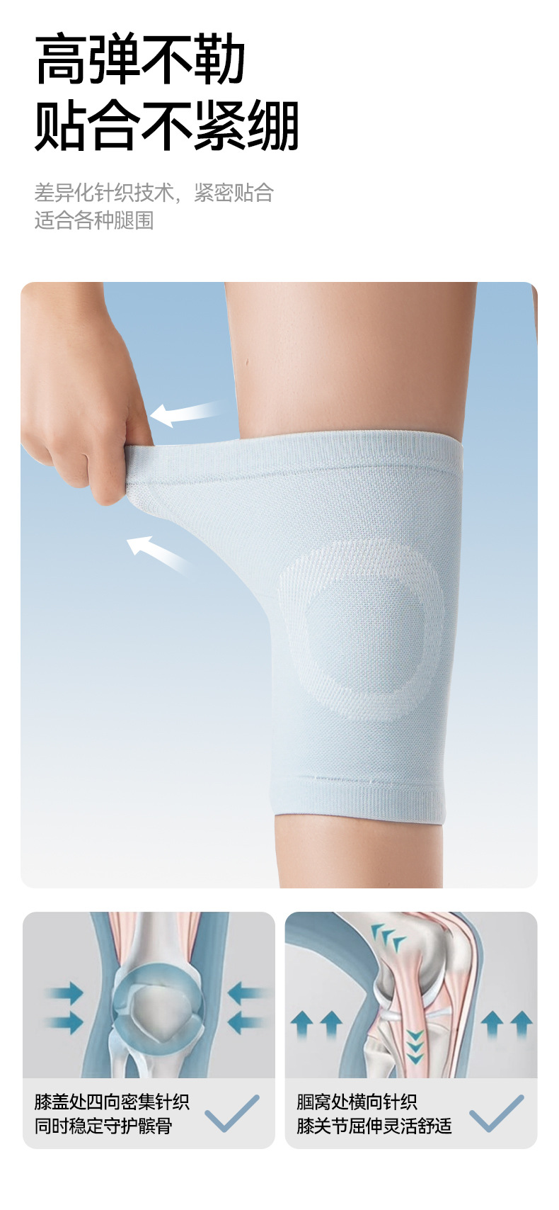 Rodillera corta funda delgada cálida manga conjunta de las mujeres protección de la rodilla antideslizante color de la piel vieja pierna fría verano de las mujeres