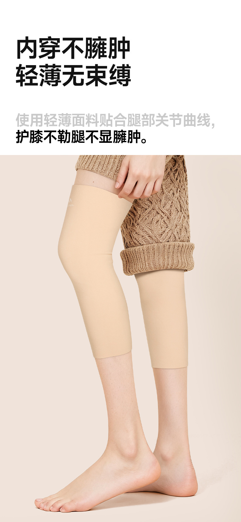 Rodilla de ternilla caliente para mujeres, ropa interior cercana antideslizante para piernas desnudas, artefacto de rodilla para piernas frías, cubierta sin marcas