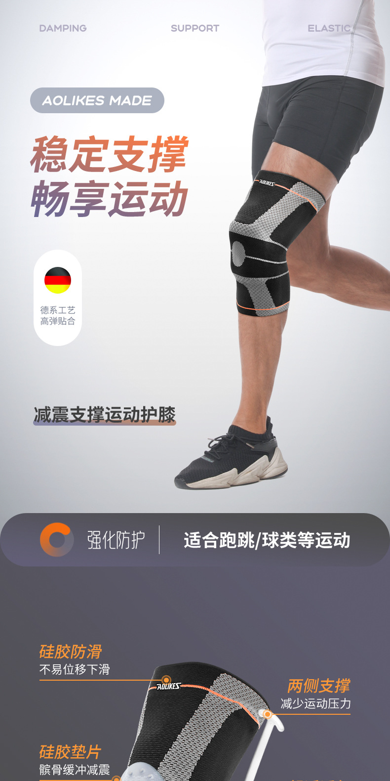 Rodillera plana doméstica baloncesto corriendo silicona amortiguador primavera soporte transpirable montañismo al aire libre montar rodilla plana pad