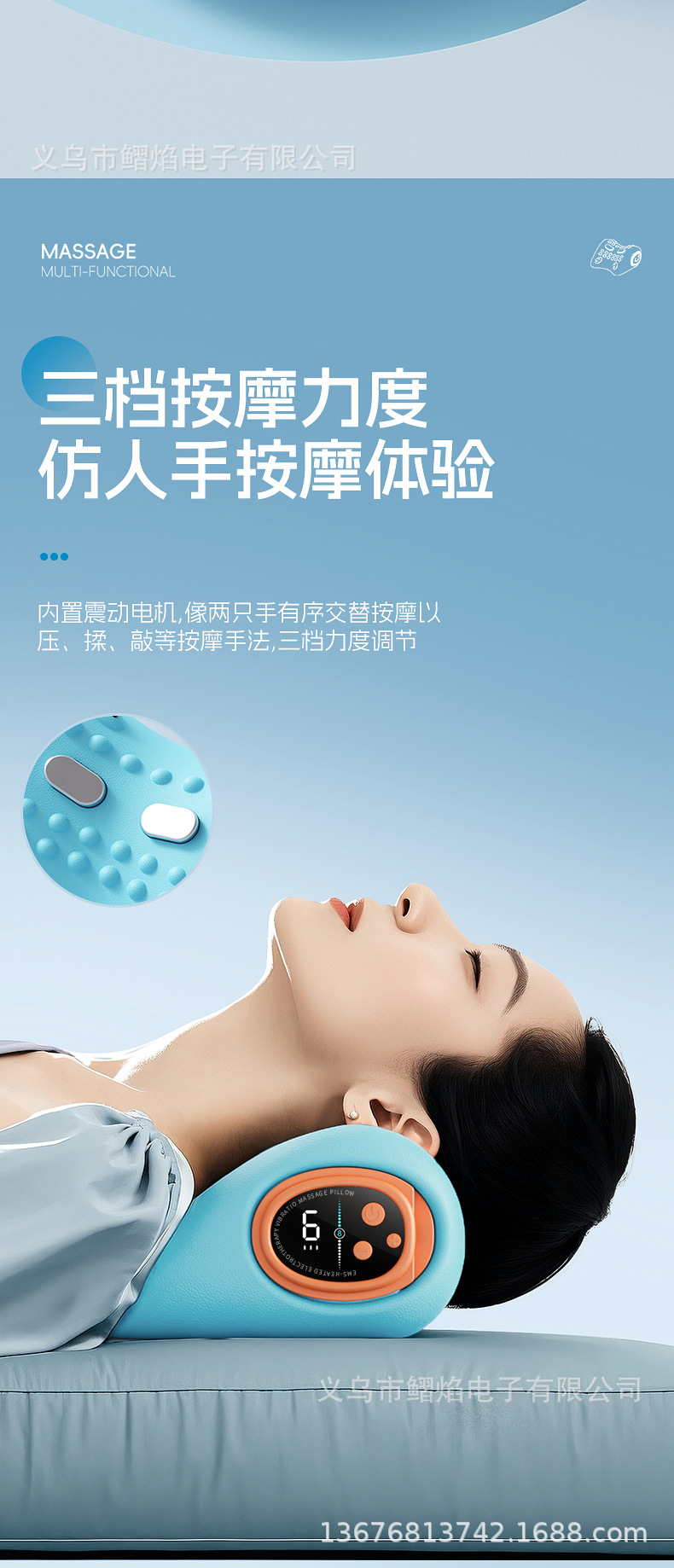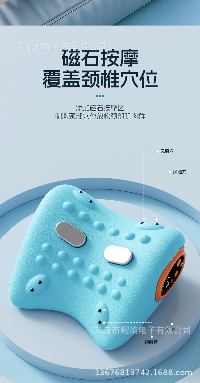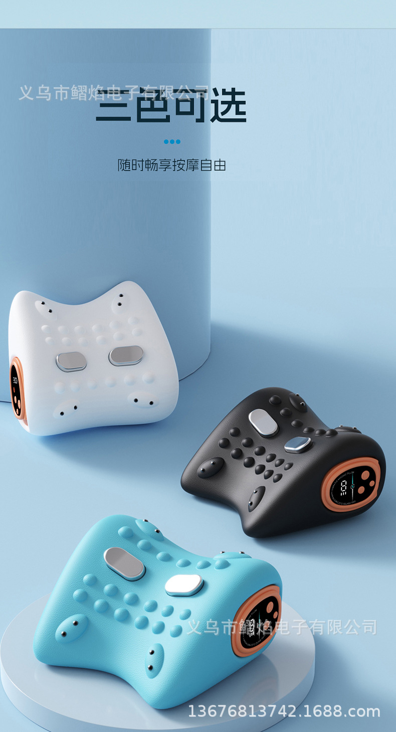 Máquina de masaje de cuello fuente transfronteriza micro corriente calentamiento vibración control remoto manual 5 en 1 almohada de masaje de columna cervical