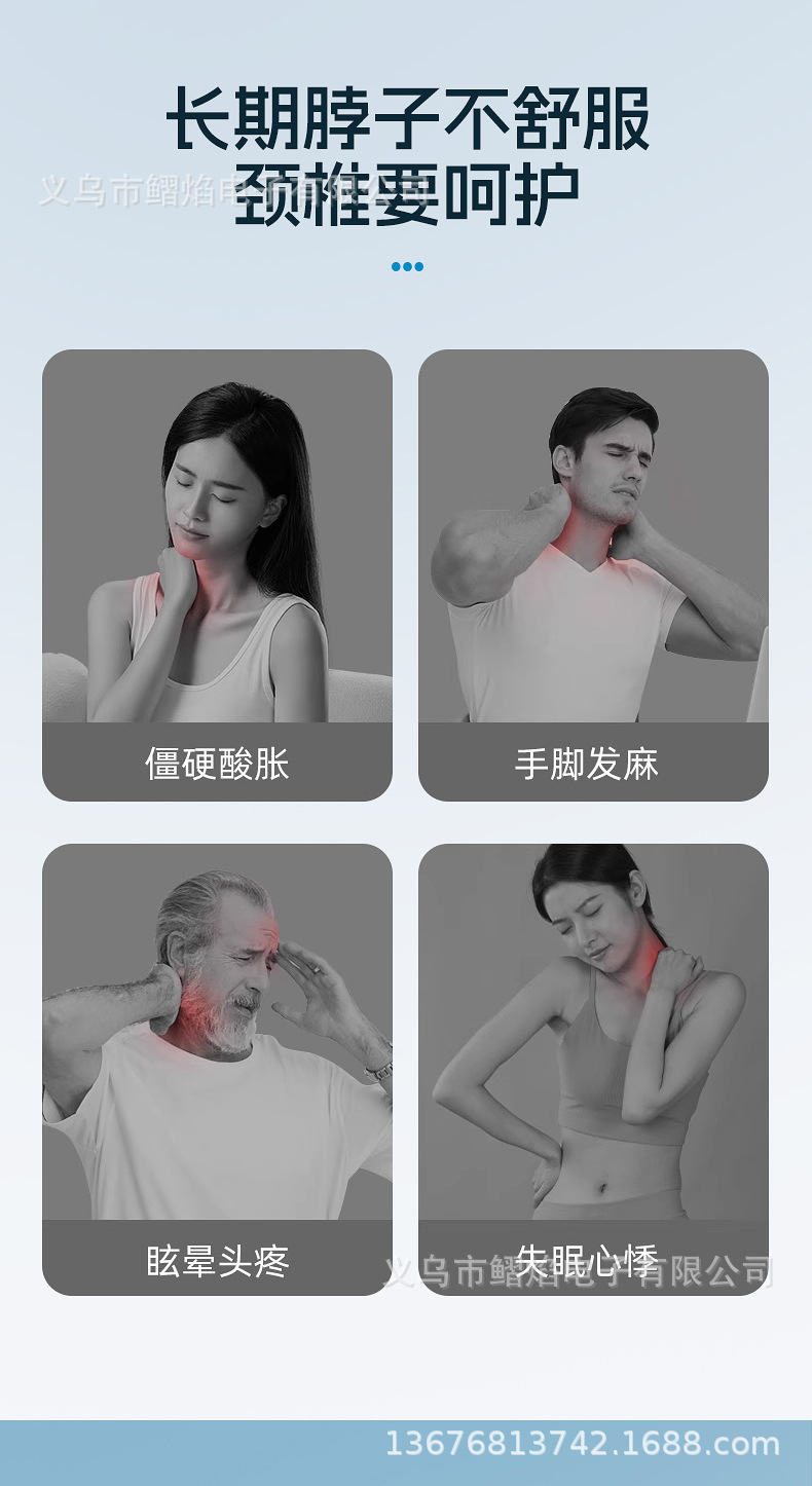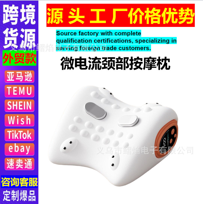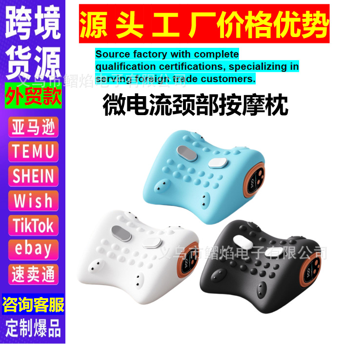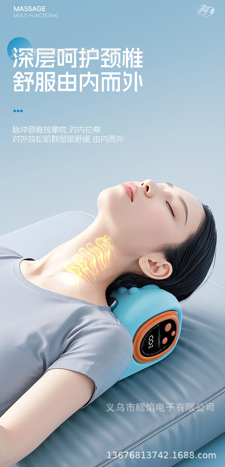 Máquina de masaje de cuello fuente transfronteriza micro corriente calentamiento vibración control remoto manual 5 en 1 almohada de masaje de columna cervical