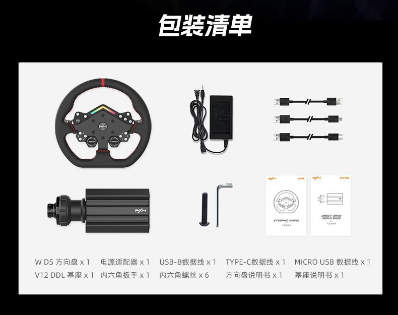PXN-V12 lite Force Feedback Simulador de volante de juego de carreras PC / PS4 / Xboxone X / S ser
