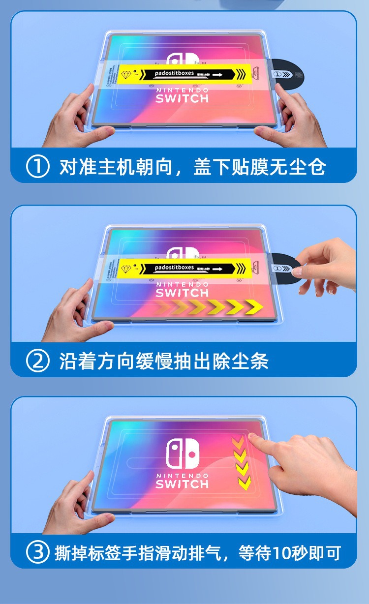 Adecuado para consola de juegos Nintendo Switch2 película templada para almacenamiento sin polvo OLED protector de pantalla automático de almacenamiento de polvo