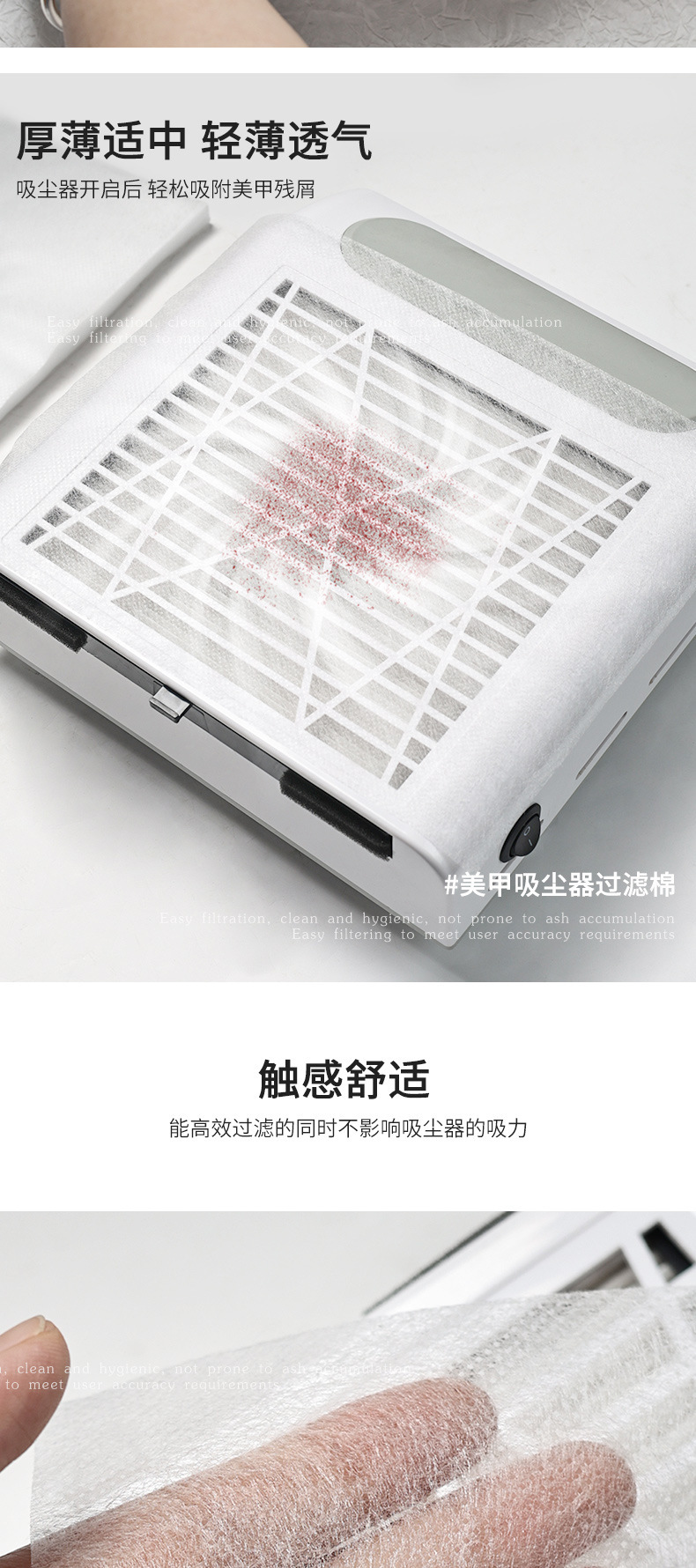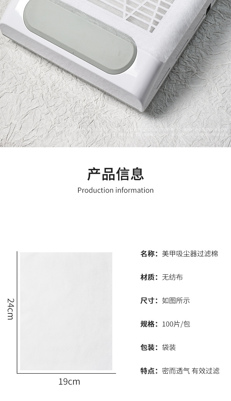 Aspiradora de uñas, algodón PE desechable, algodón filtrante no tejido, 100 piezas de reemplazo de polvo, algodón PE multicolor