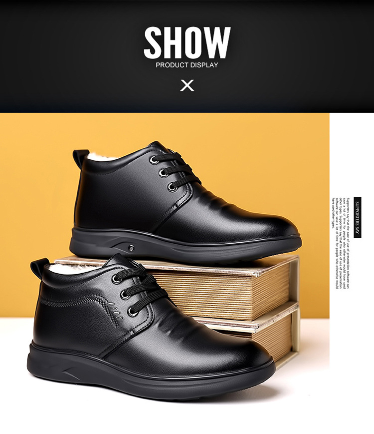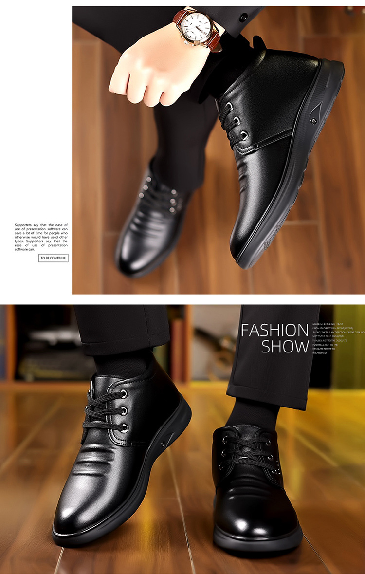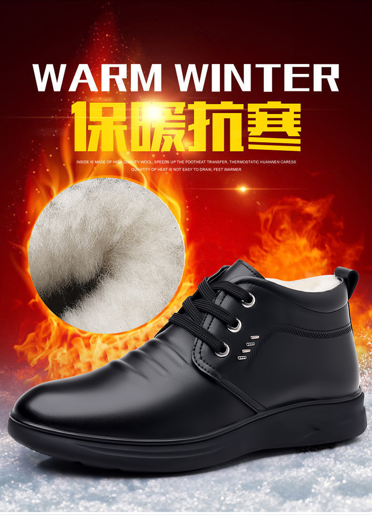 Zapatos de algodón de hombre 2024 invierno nuevo terciero calentamiento grueso piel en uno de zapatos de cuero casuales de alta altura botas de nieve para hombre
